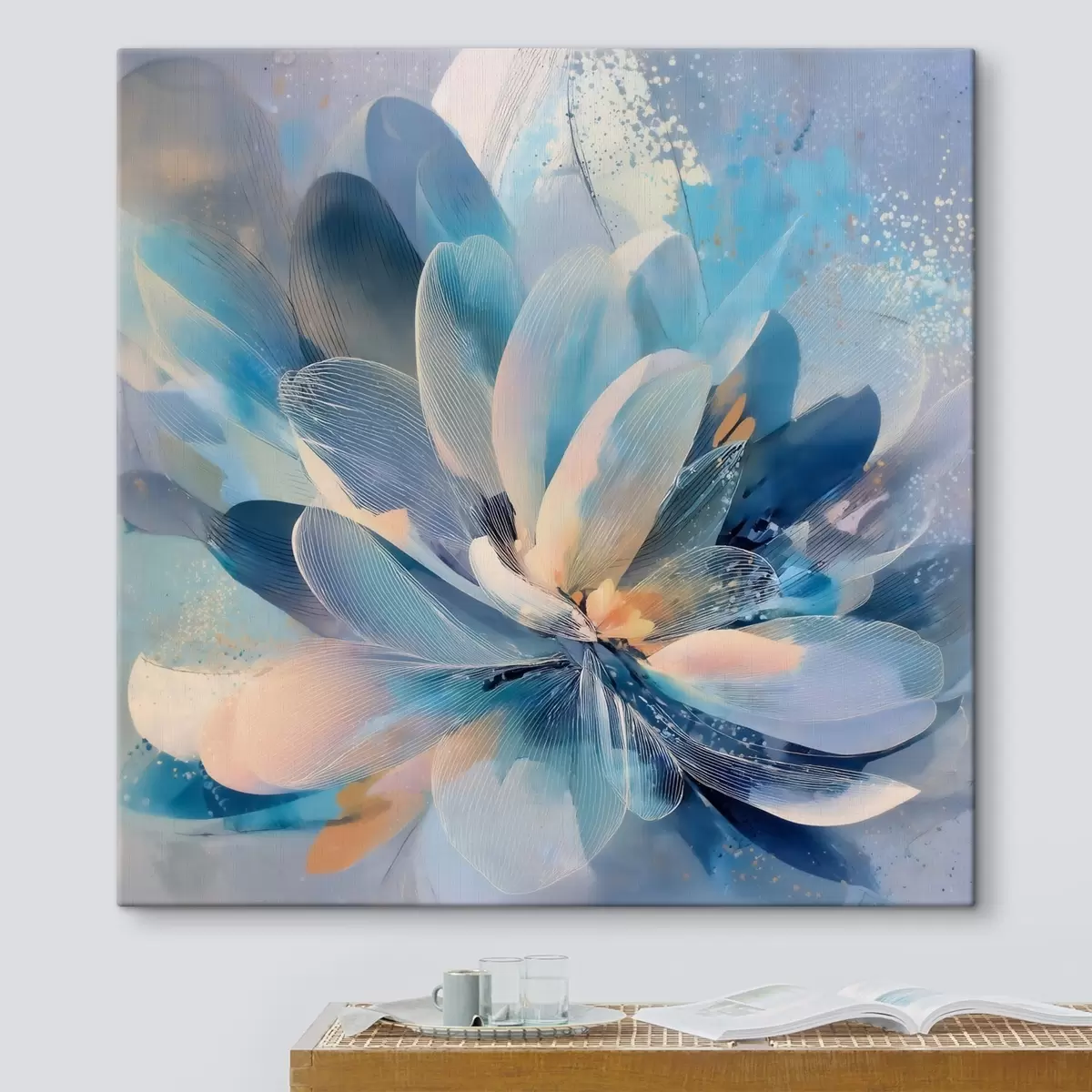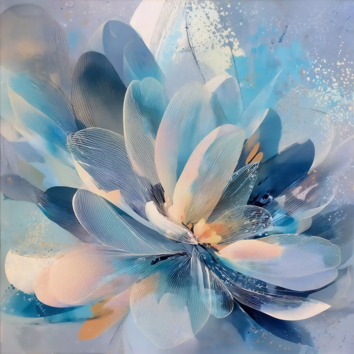 Obraz Abstraktná kvetina v chladných odtieňoch v štýle umeleckého plagátu Nr. s48186
