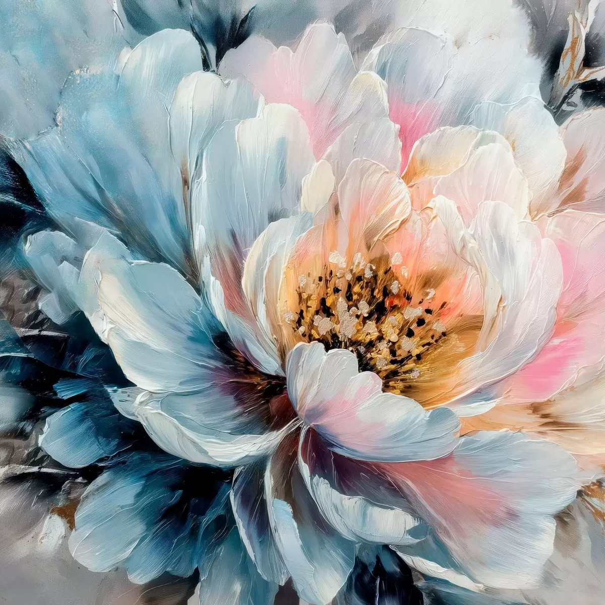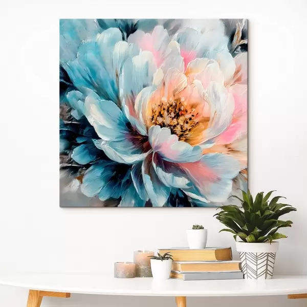 Obraz Veľká pivonka s výraznými textúrovanými ťahmi štetca v modernom maliarskom štýle Nr. s48197