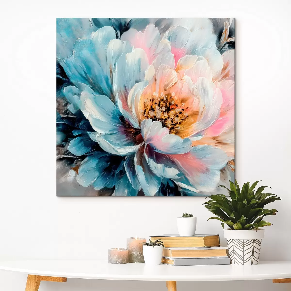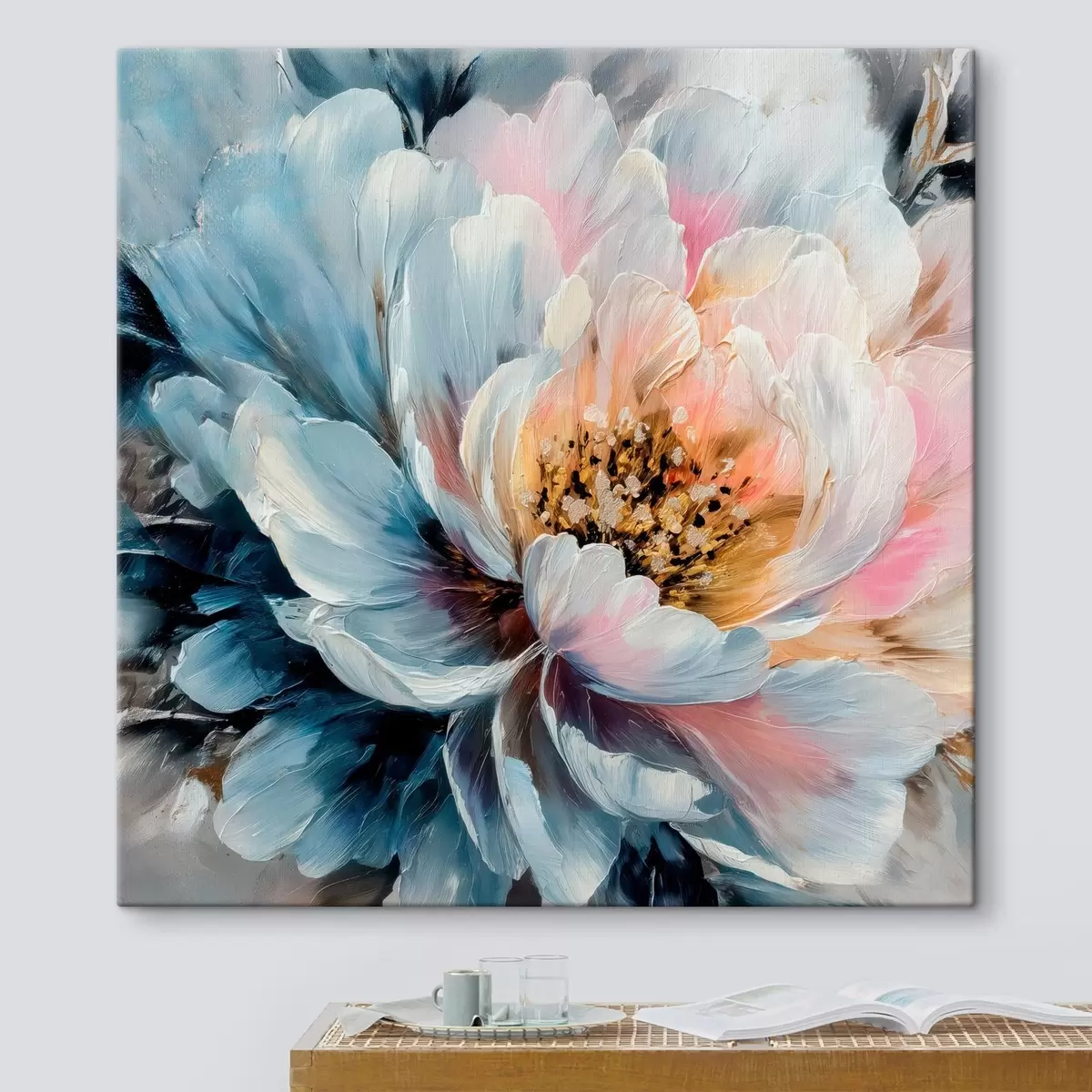 Obraz je možné zavesiť ihneď po jeho prevzatí. Obraz bude napnutý na drevených nosidlách so šírkou 2 cm.