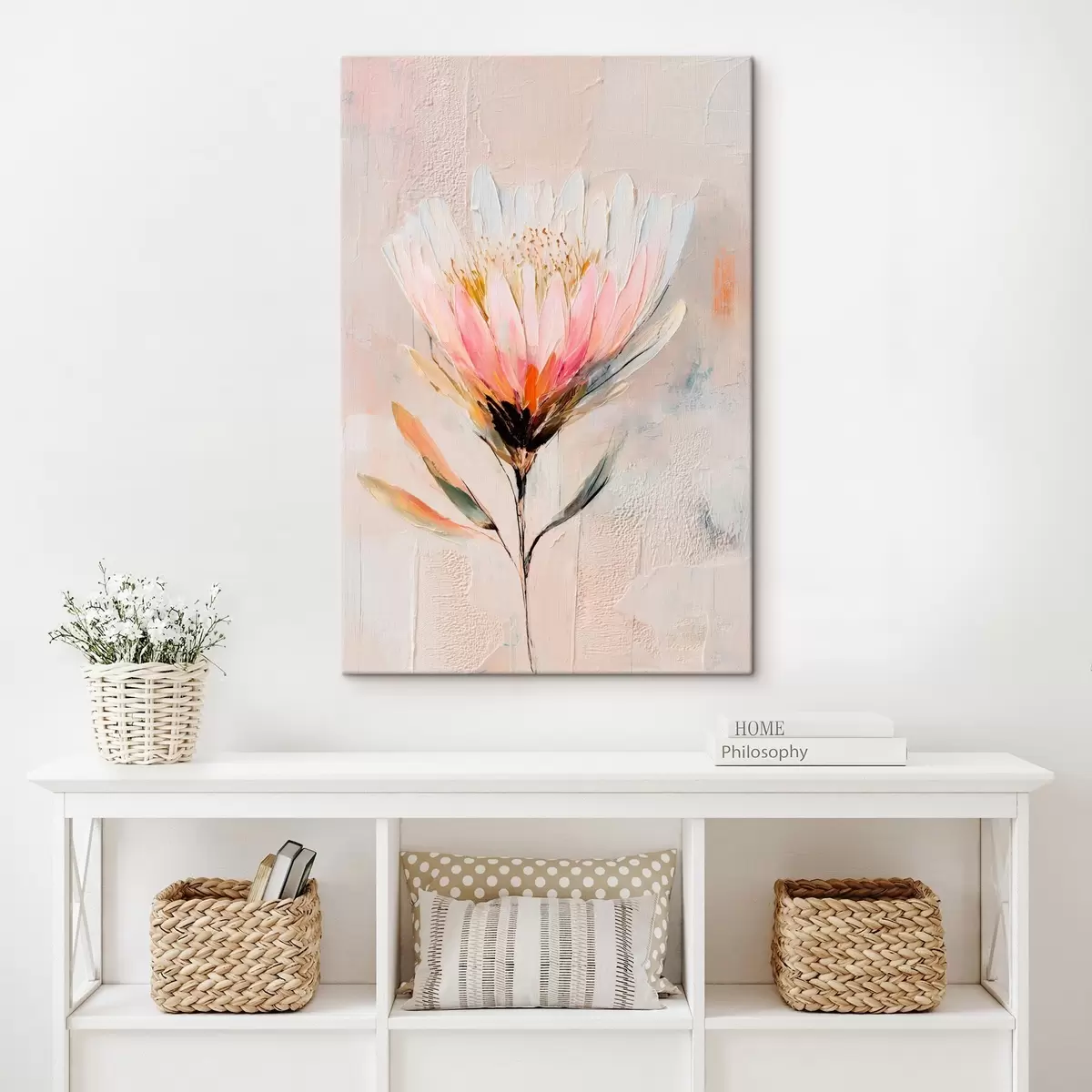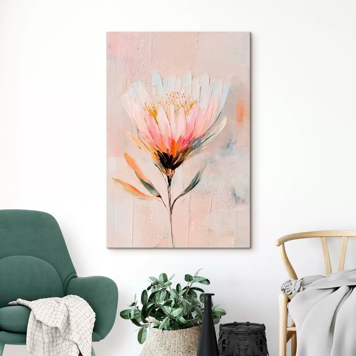 Obraz Kvet protey v jemných ružových odtieňoch v štýle olejomaľby Nr. s48205