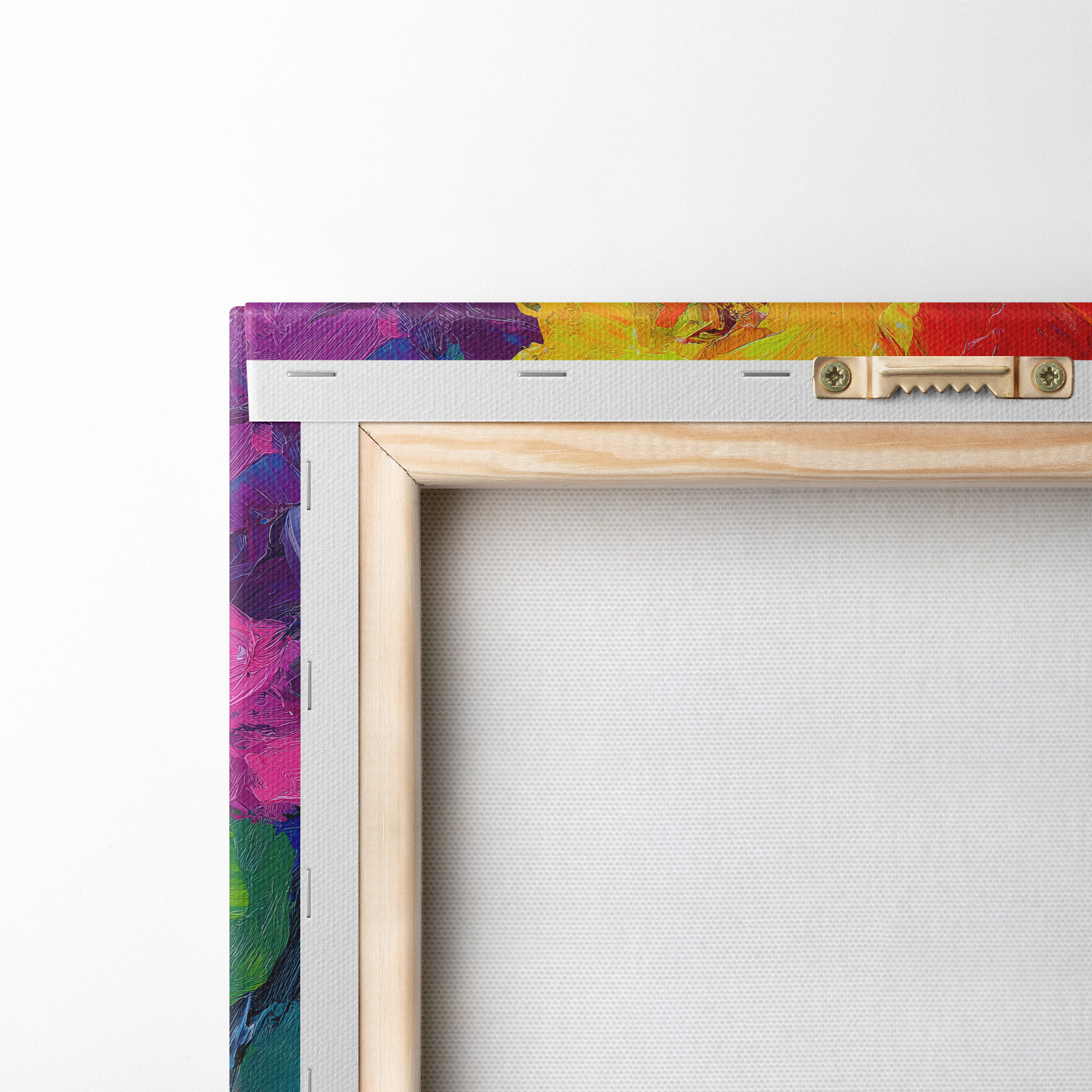 Obraz môžete zavesiť na skrutky. Na tento účel k našim obrazom prikladáme úchytky, ktoré vám umožnia obraz pohodlne zavesiť.