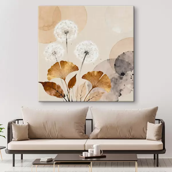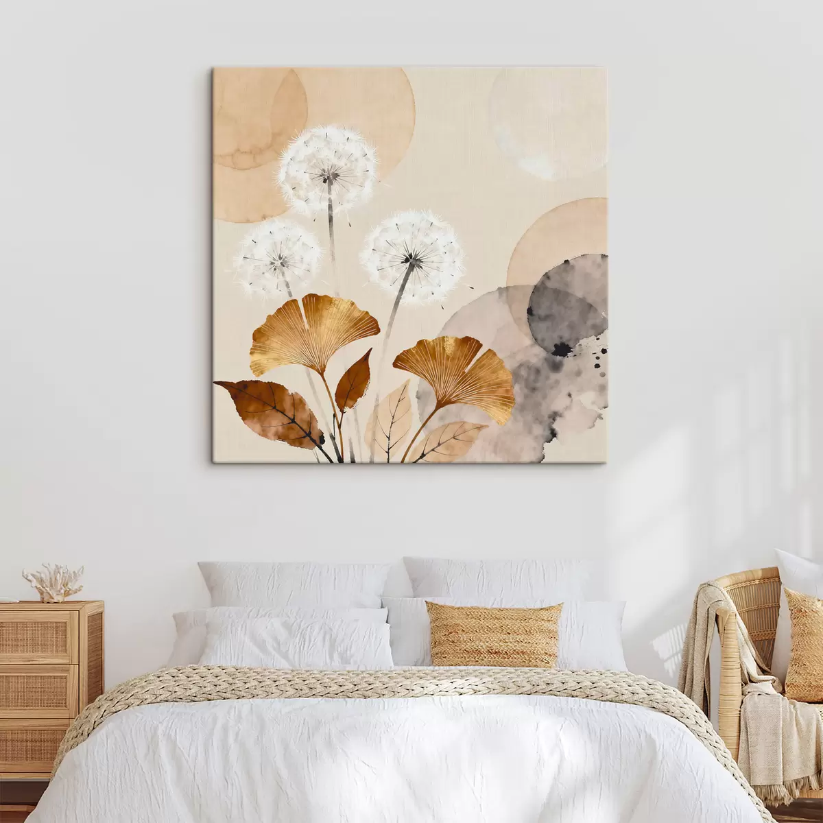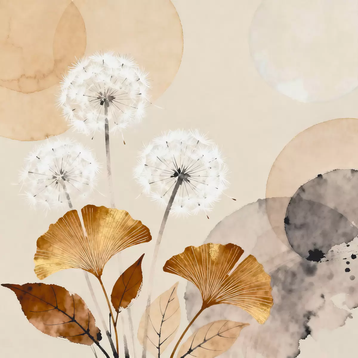 Obraz Abstraktné motívy púpav a listov ginkga Nr. s48279