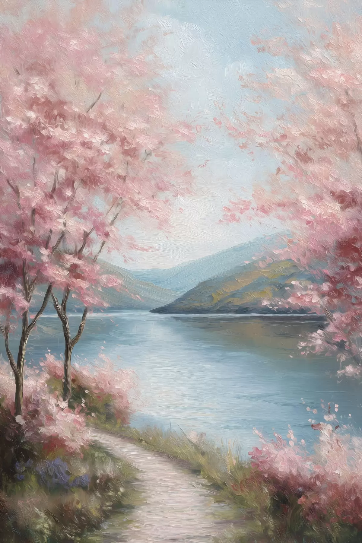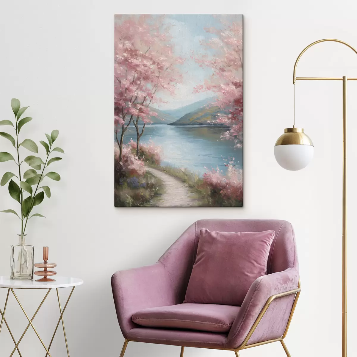 Obraz krajina s ružovými stromami v olejovom štýle Nr. s48290