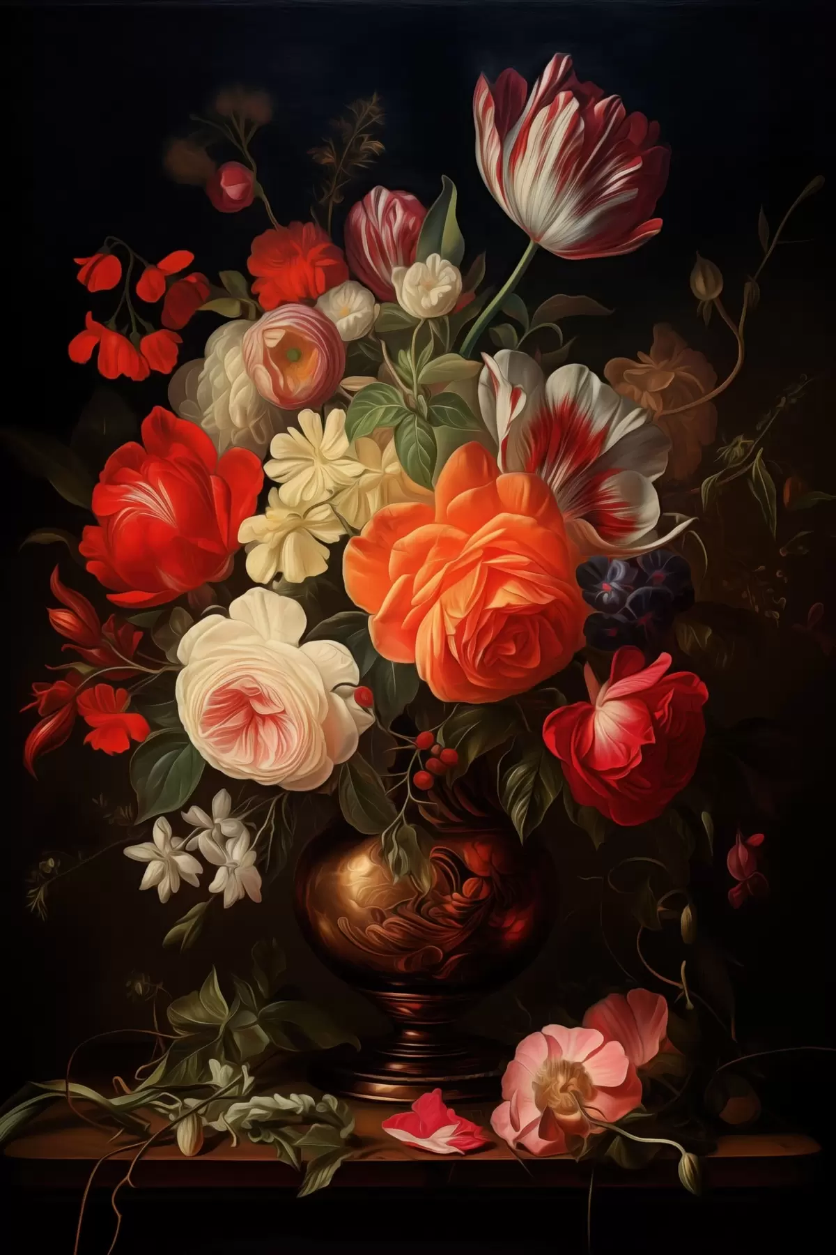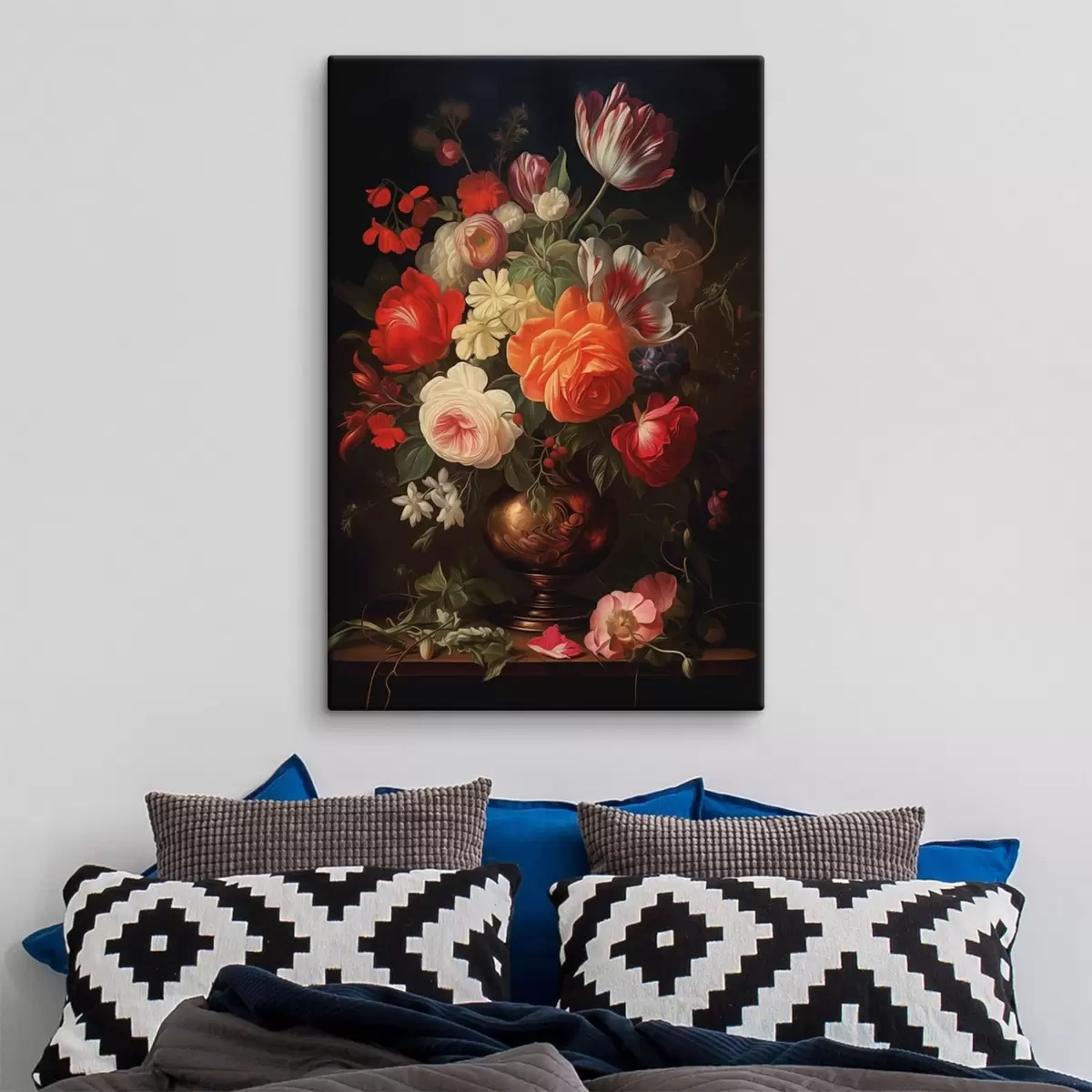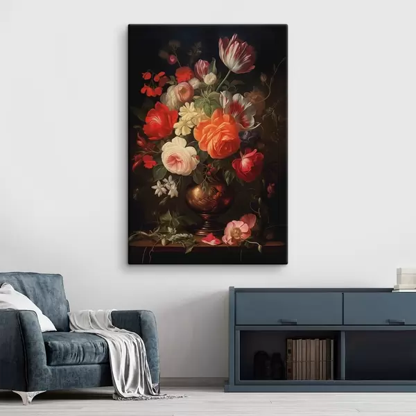 Obraz Kytica kvetov vo váze na tmavom pozadí Nr. s48351