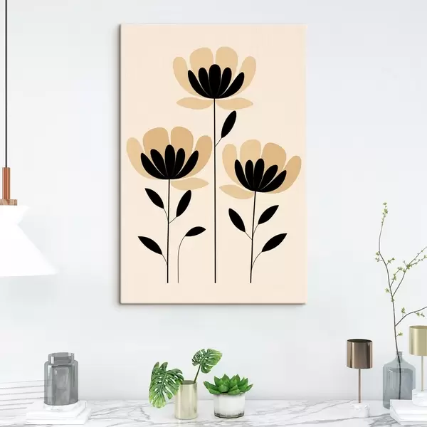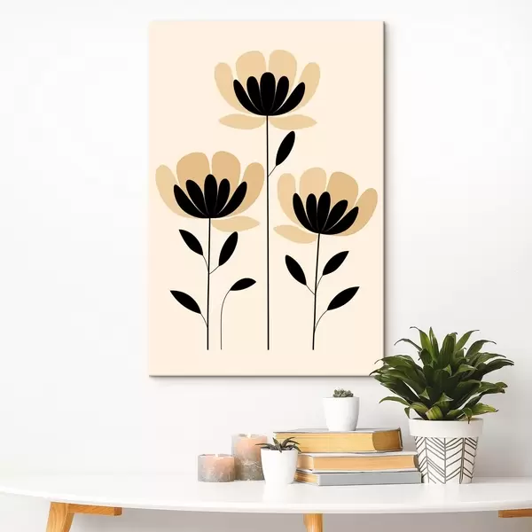 Obraz Minimalistické kvety v čiernej a béžovej farebnej kombinácii Nr. s48353