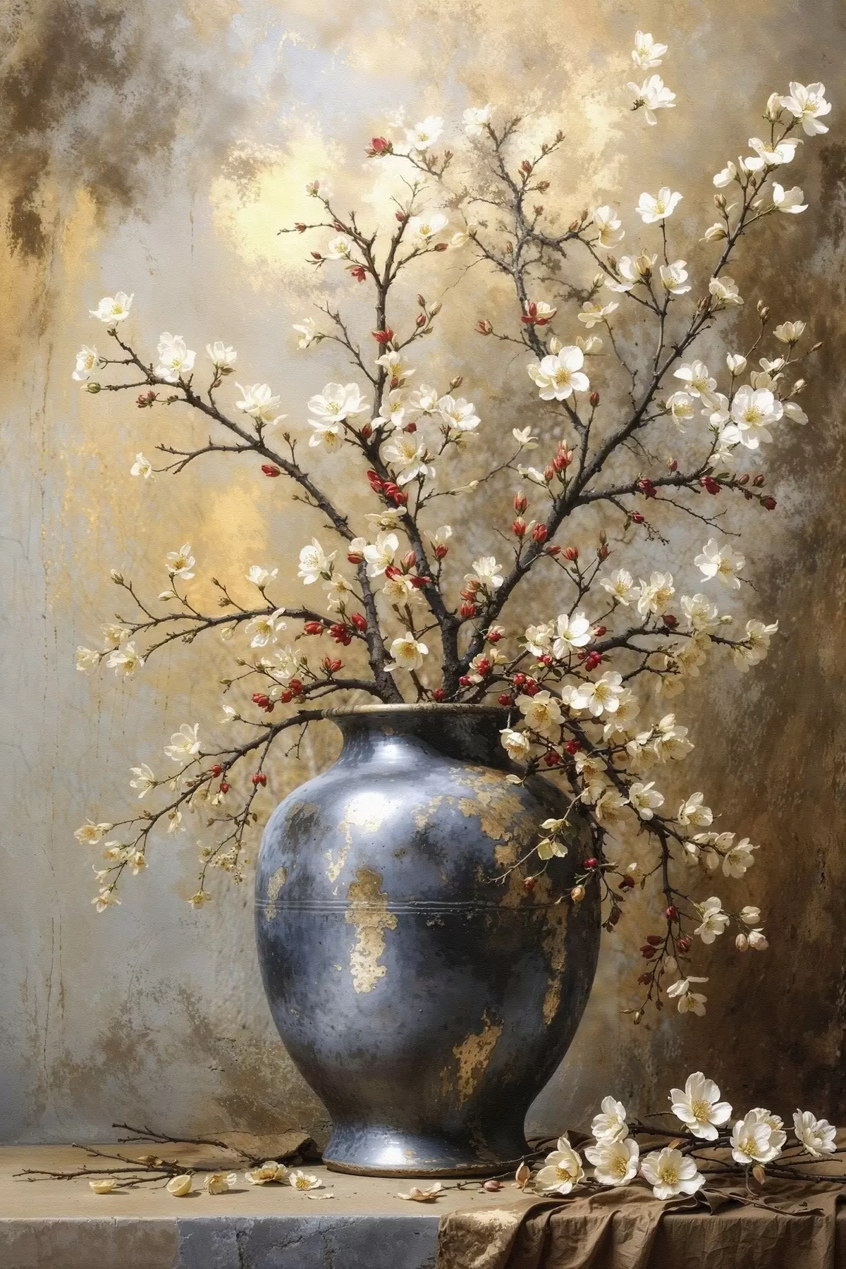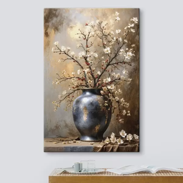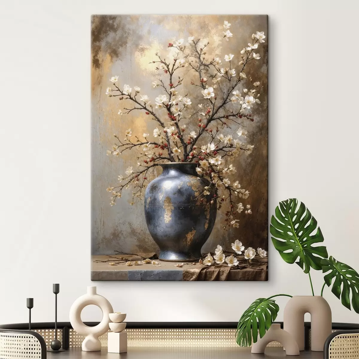 Obraz Kvitnúce vetvičky vo váze na neutrálnom pozadí Nr. s48361