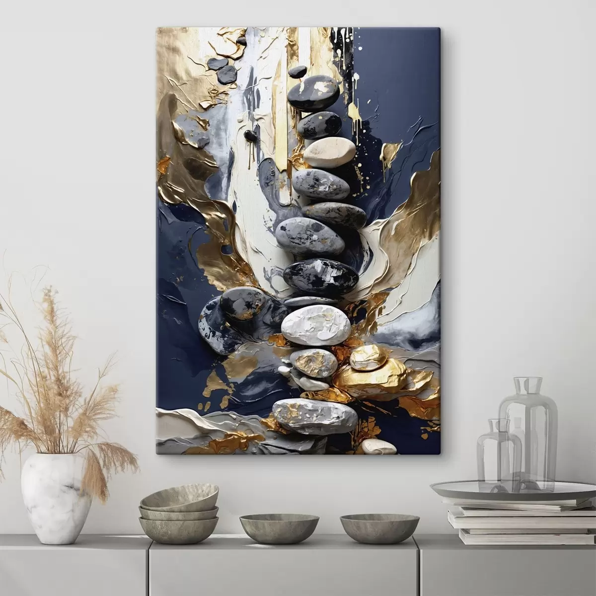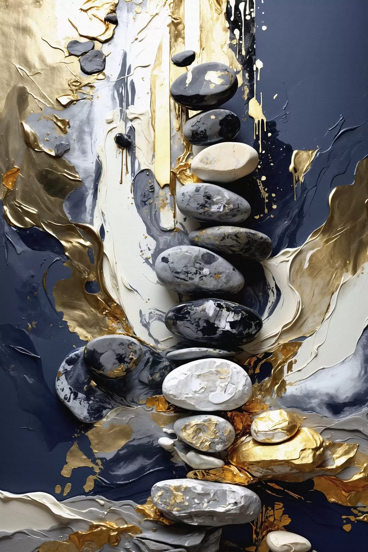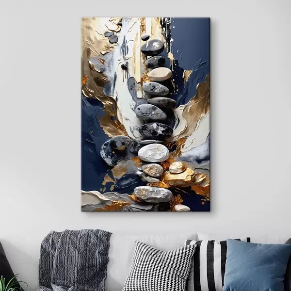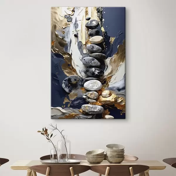 Obraz Abstraktná kompozícia s kameňmi a textúrovanými ťahmi Nr. s48362