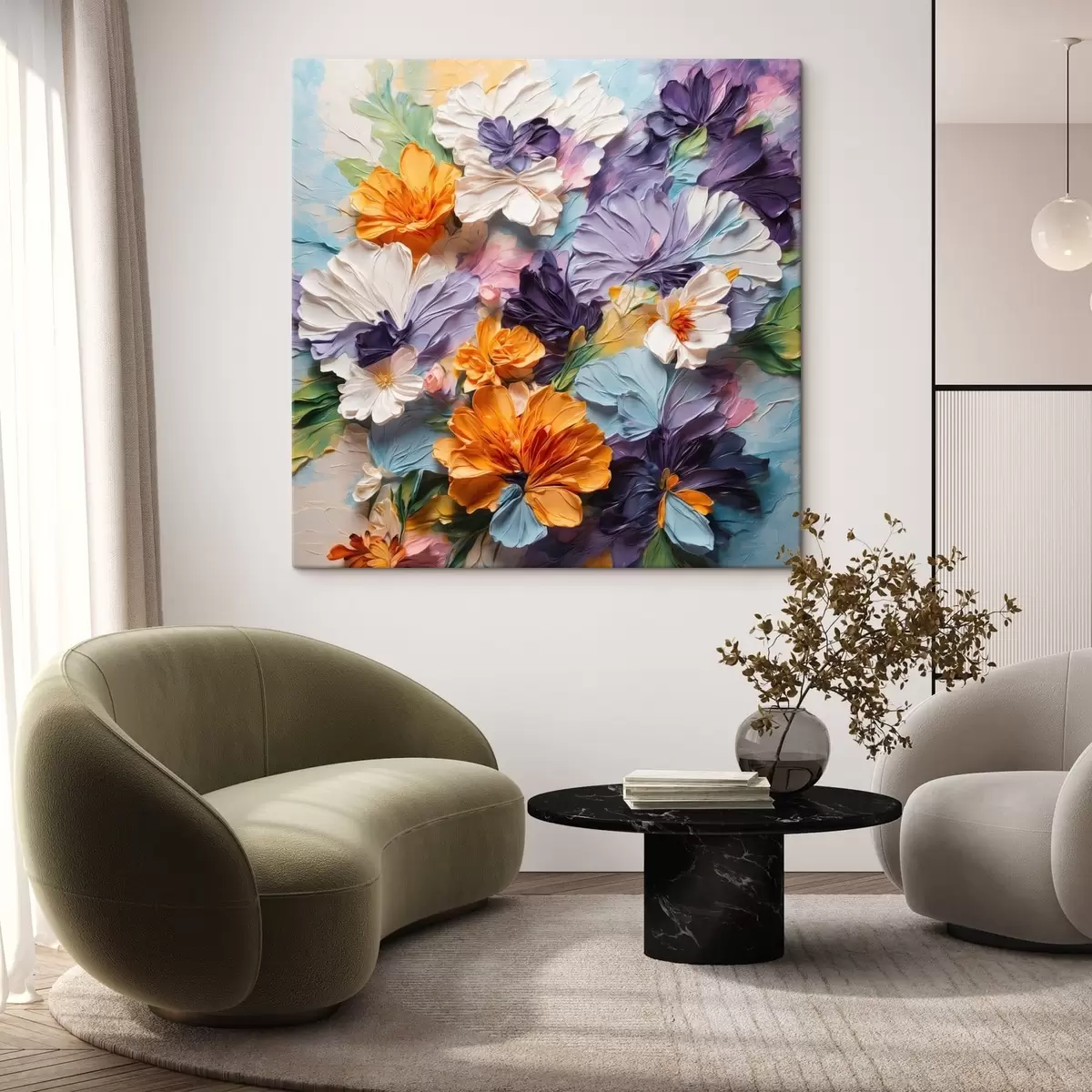Obraz Živé kvety s výraznou štruktúrou na pastelovom pozadí Nr. s48363