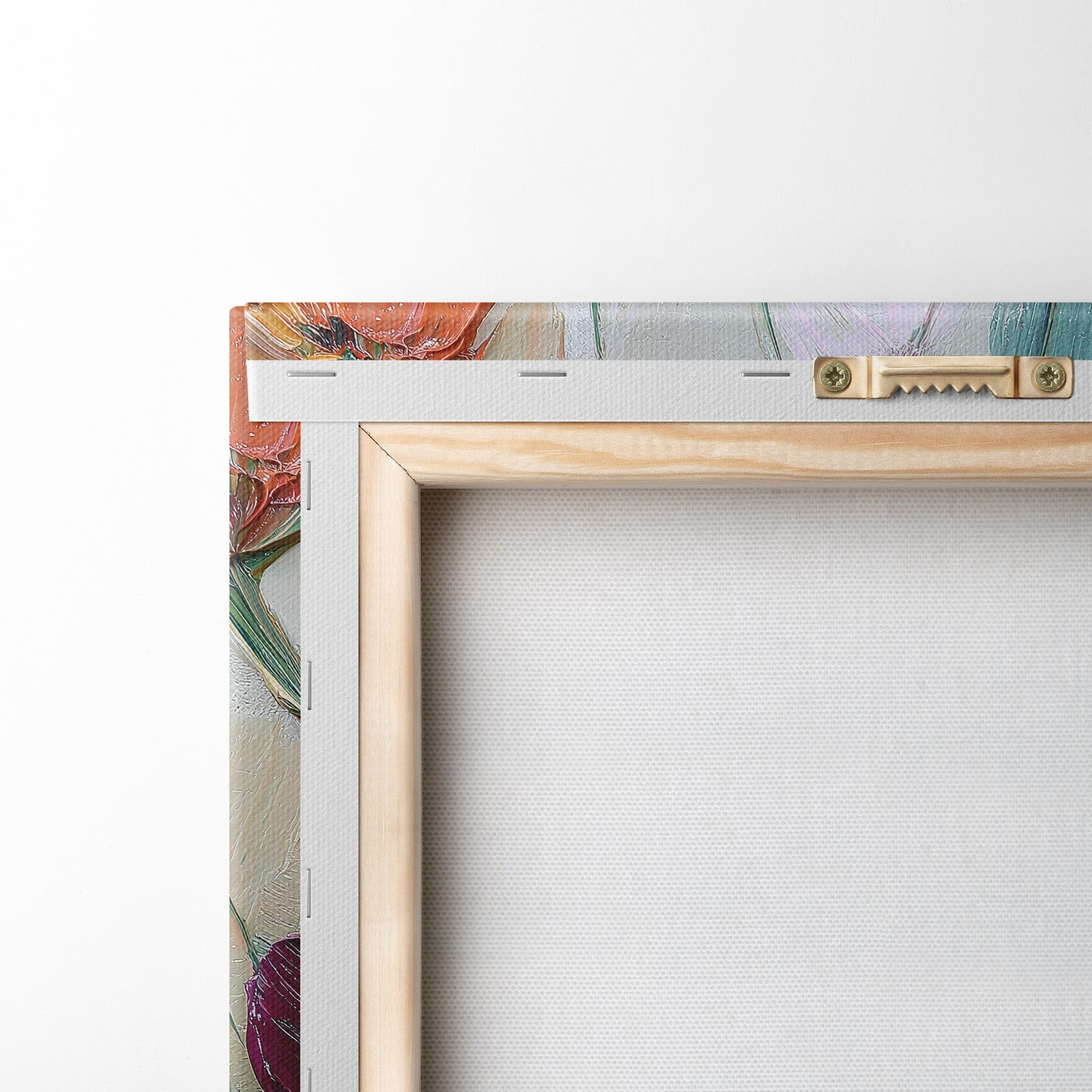 Obraz môžete zavesiť na skrutky. Na tento účel k našim obrazom prikladáme úchytky, ktoré vám umožnia obraz pohodlne zavesiť.