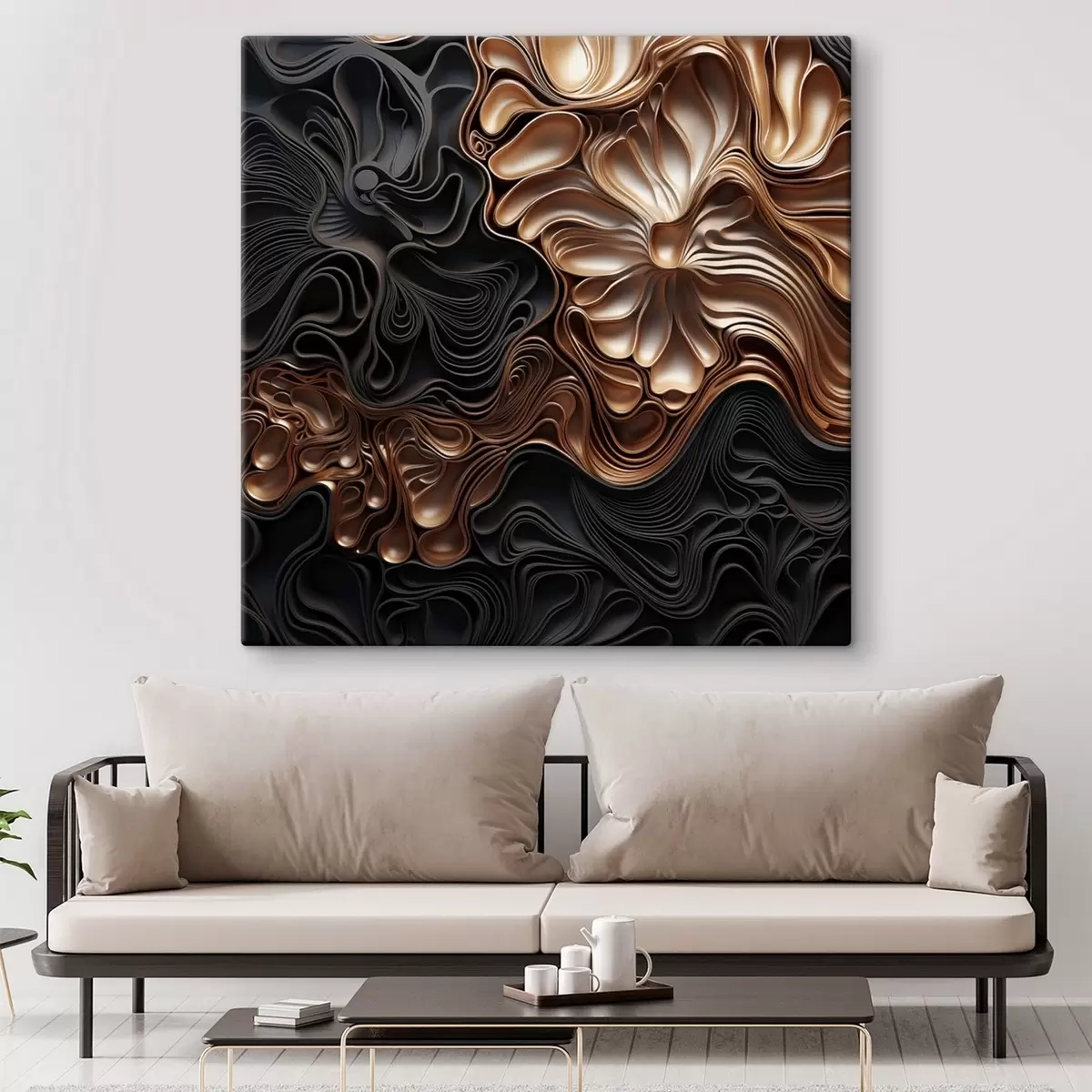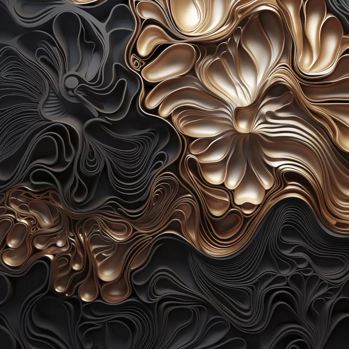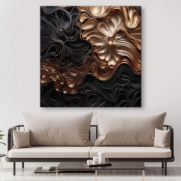 Obraz Abstraktné, plynulé, organické tmavé tvary, ktoré vytvárajú textúrované dielo moderného umenia Nr. s48383