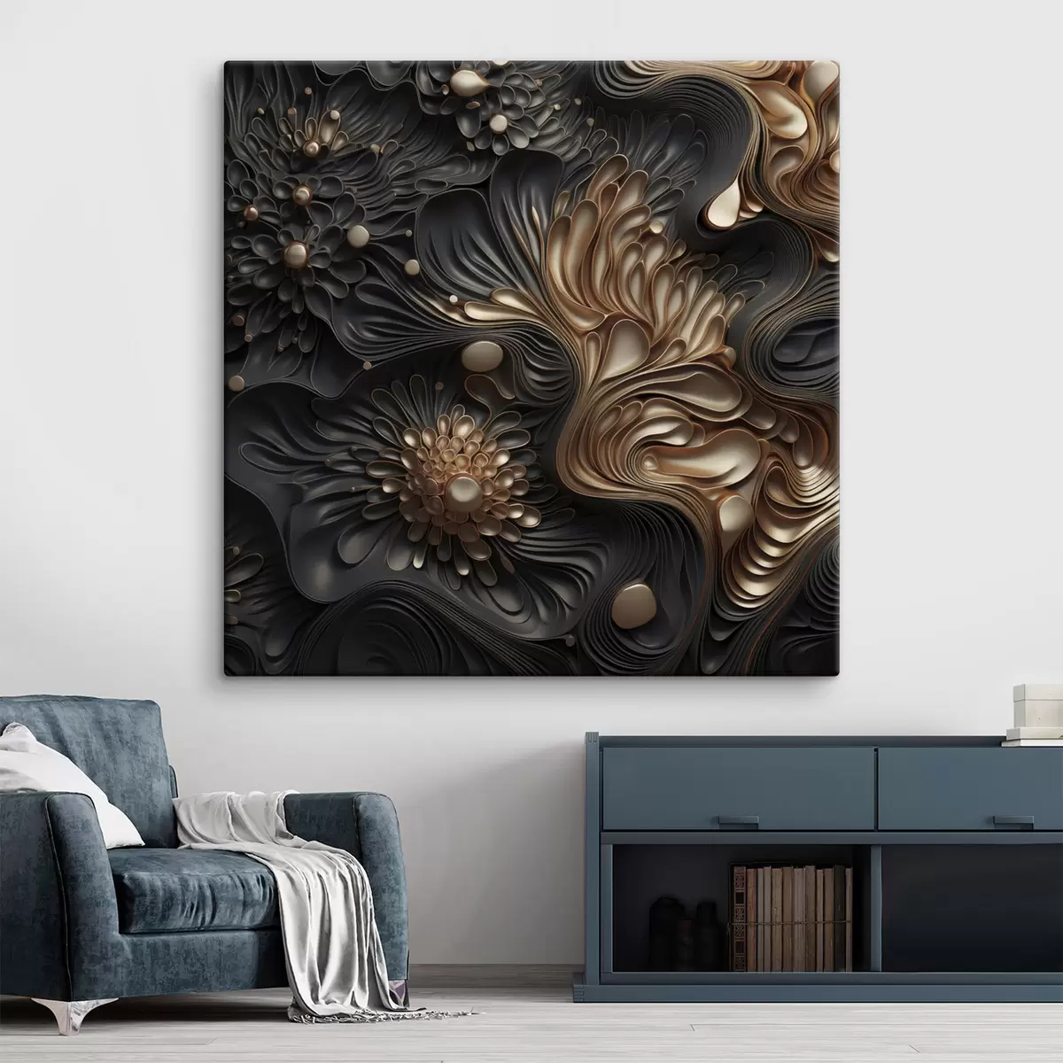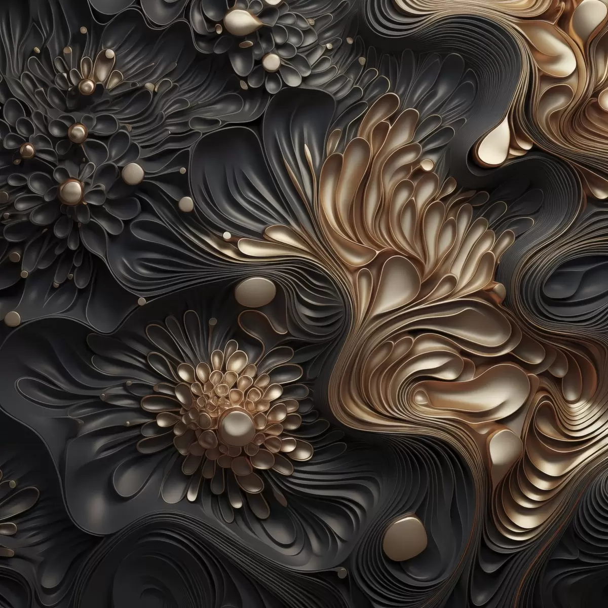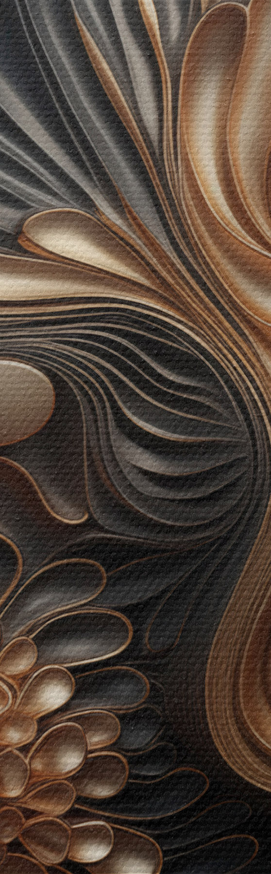 Obraz Abstraktné, plynulé, organické tmavé tvary, ktoré vytvárajú textúrované dielo moderného umenia Nr. s48384