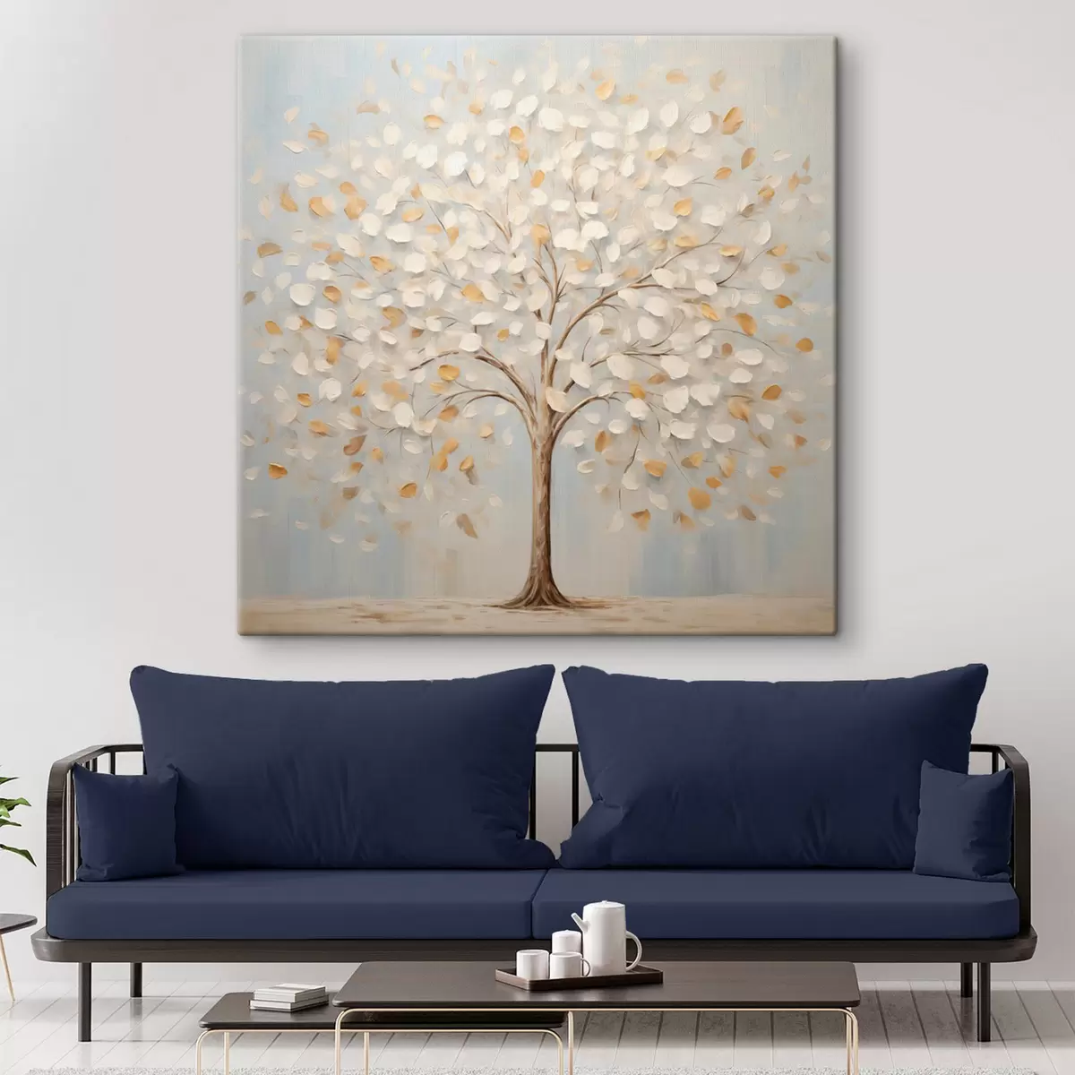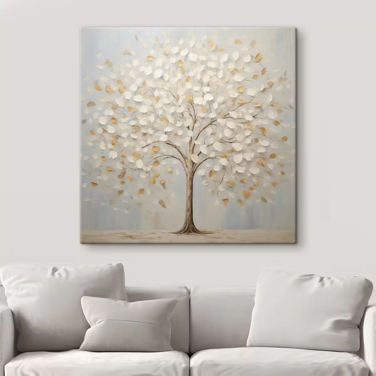 Obraz Textúrovaný obraz stromu s bielymi a žltými listami na svetlo modrom pozadí Nr. s48391