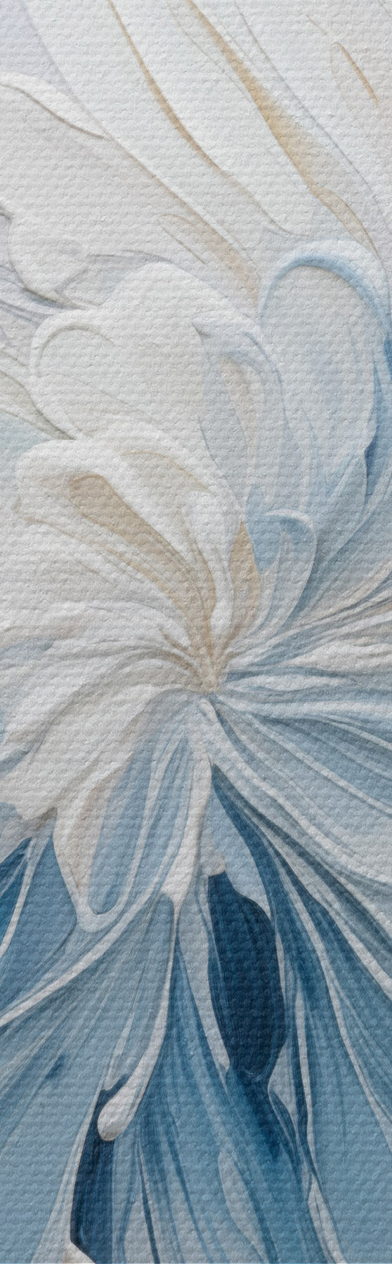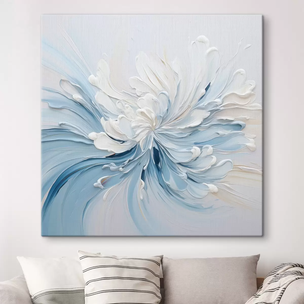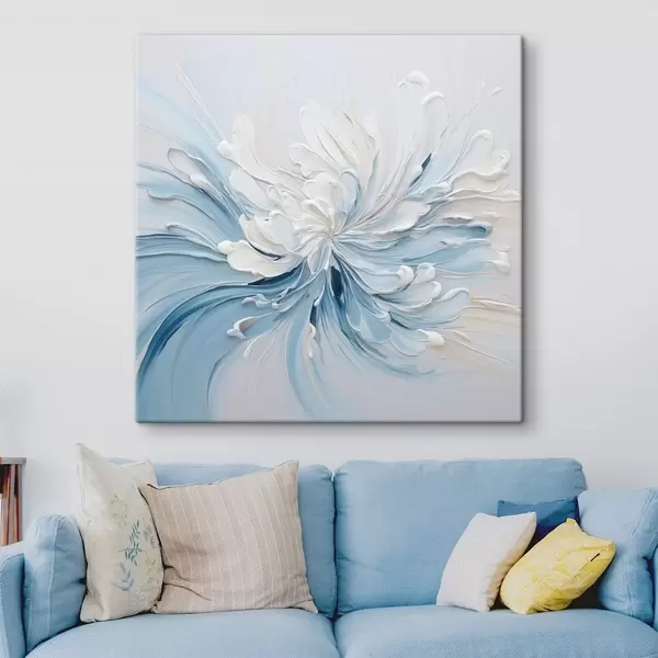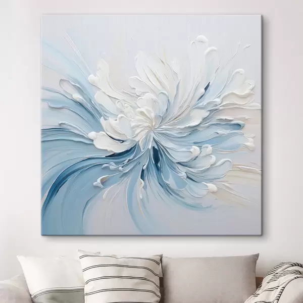 Obraz Bielo-svetlomodrý abstraktný kvetinový vzor s textúrovanými okvetnými lístkami a vírivými čiarami Nr. s48396