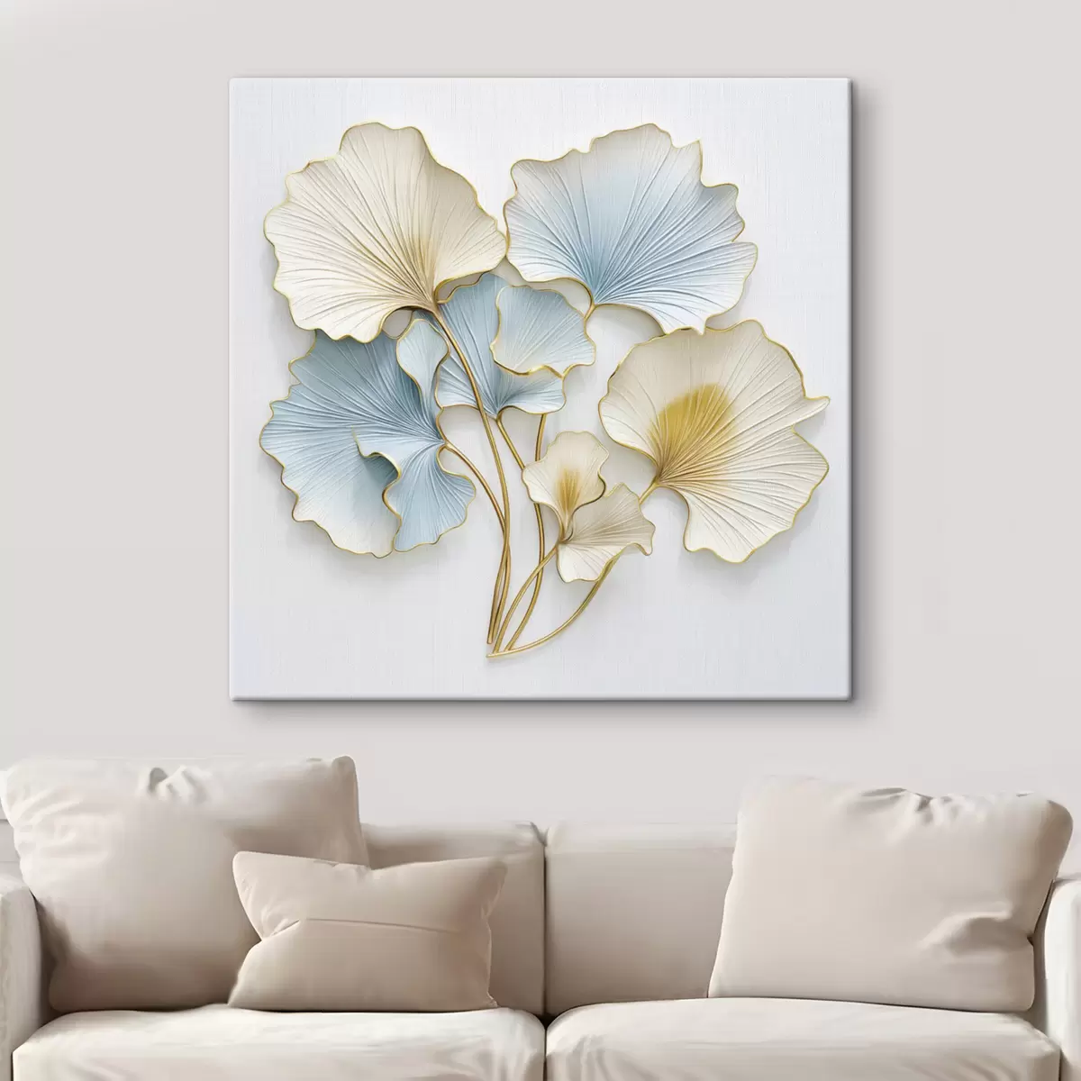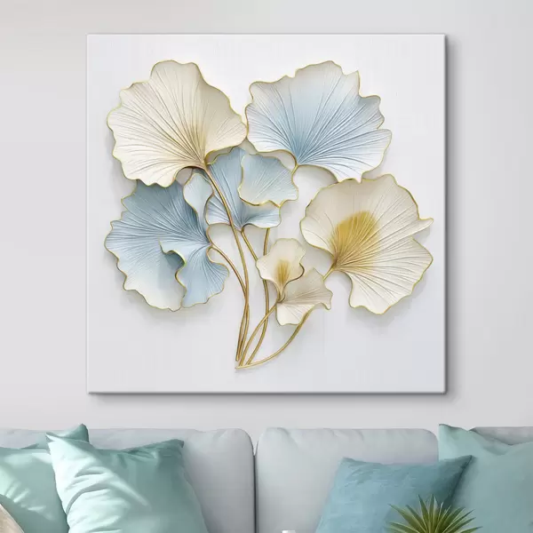 Obraz Štýlizované listy ginkga s modrými a žltými akcentmi Nr. s48398