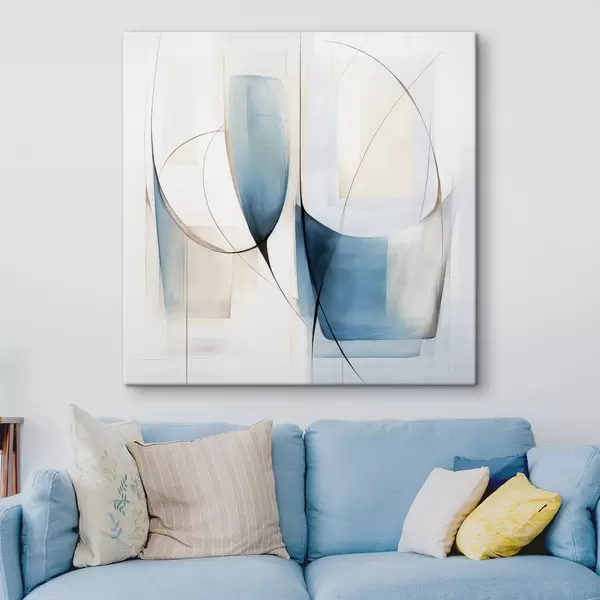 Obraz Abstraktná minimalistická kompozícia s modrými a béžovými tvarmi Nr. s48403