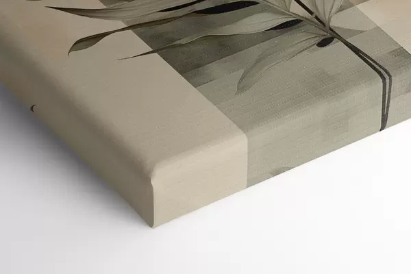 Obraz Tmavozelená rastlina s abstraktnými geometrickými tvarmi a akvarelovými textúrami v béžovej a zelenej farbe Nr. s48410