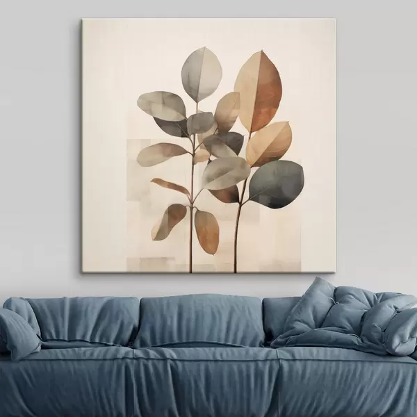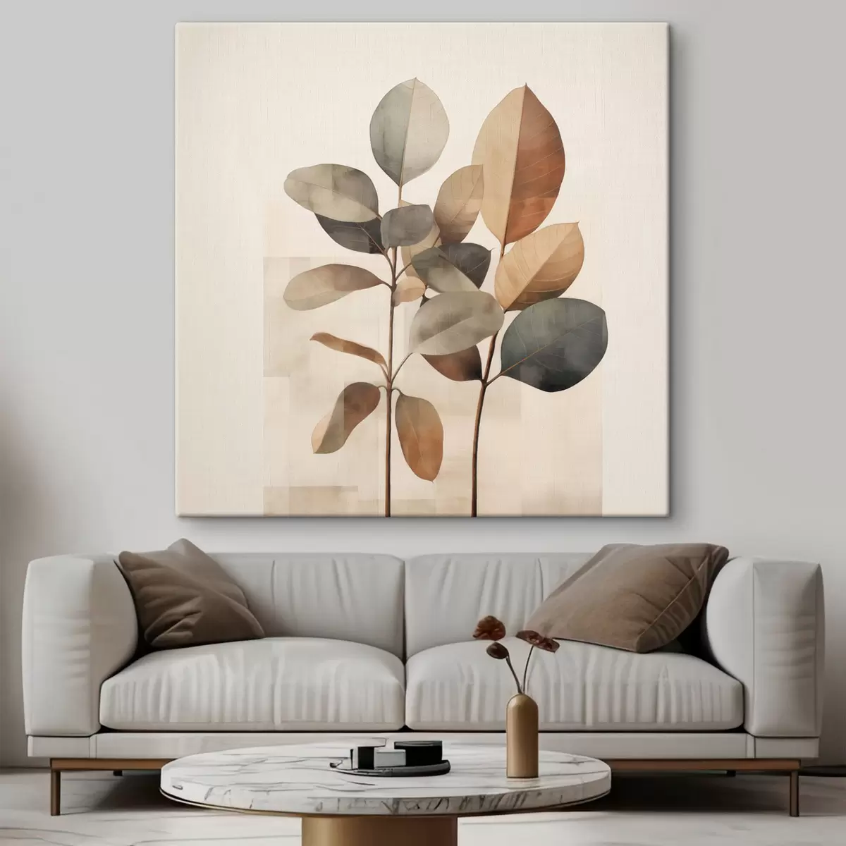 Obraz Vysoké rastliny s oválnymi listami v tlmených odtieňoch s abstraktnými obdĺžnikovými tvarmi Nr. s48413