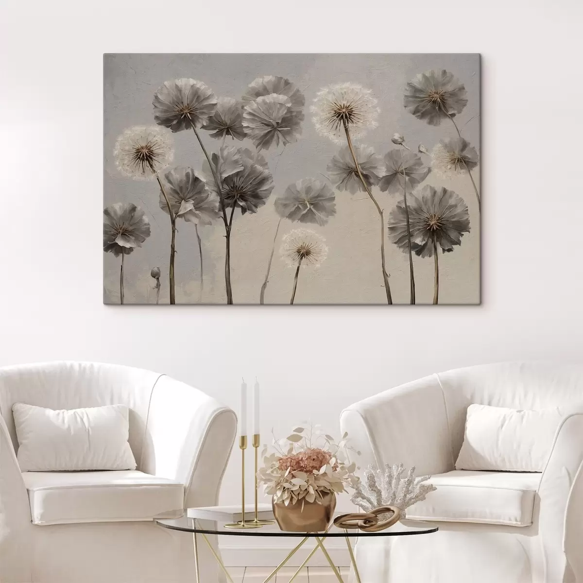 Obraz Dekoratívne púpavky v neutrálnych odtieňoch Nr. s48492