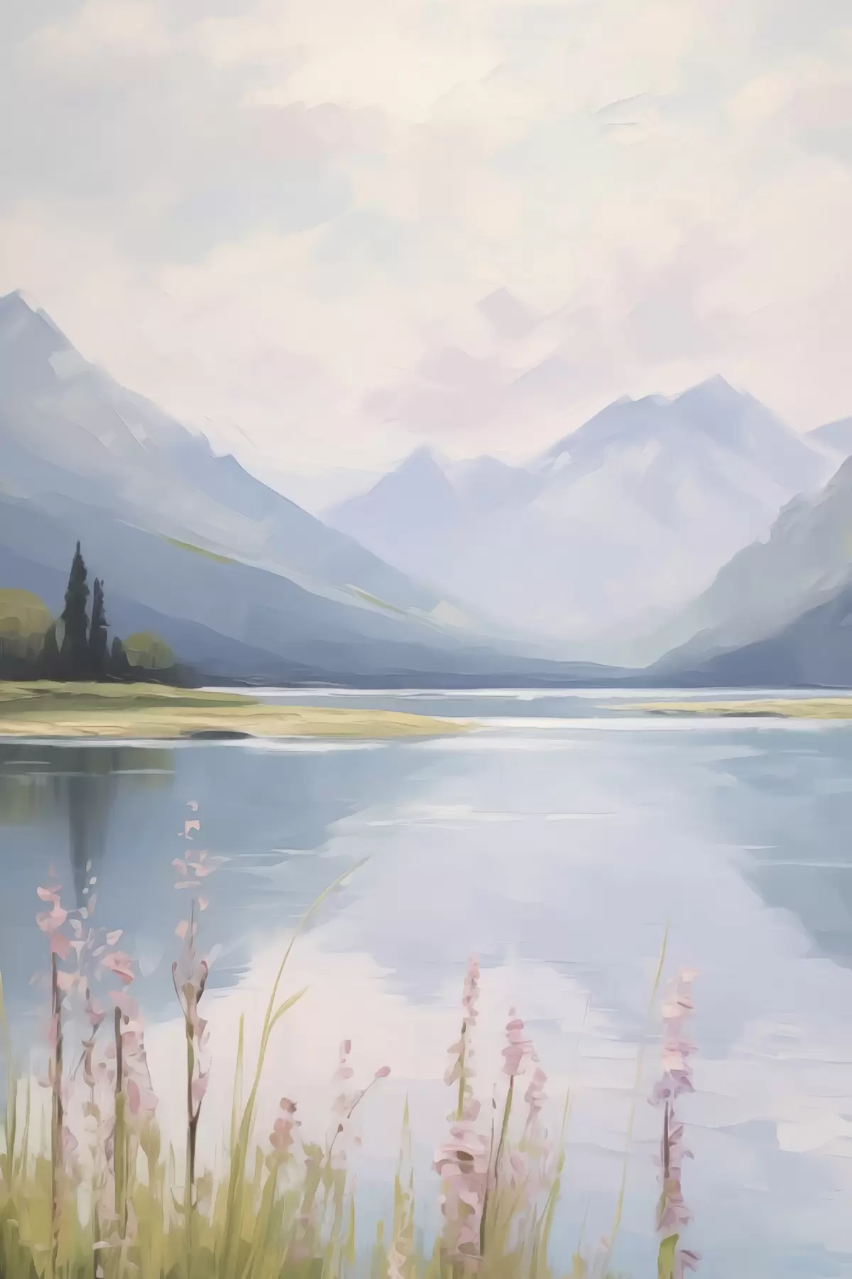 Obraz Jazero v blízkosti hôr imitácia maľby Nr. s48503