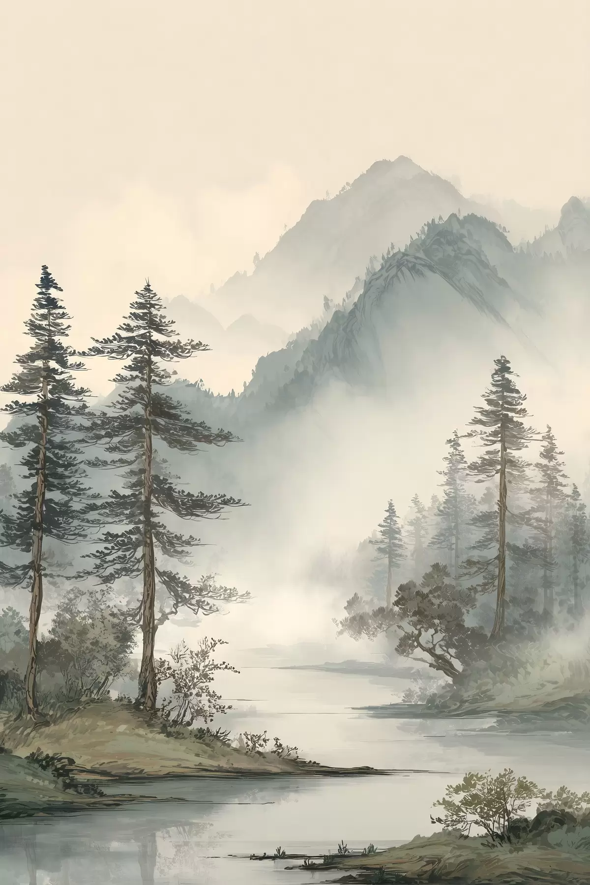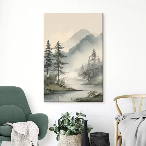 Obraz horská krajina s borovicami a riekou Nr. s48532