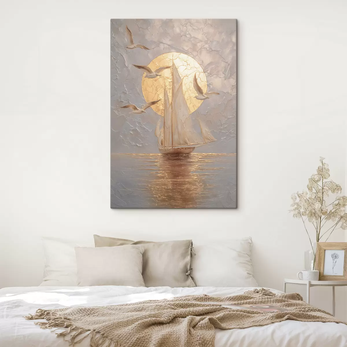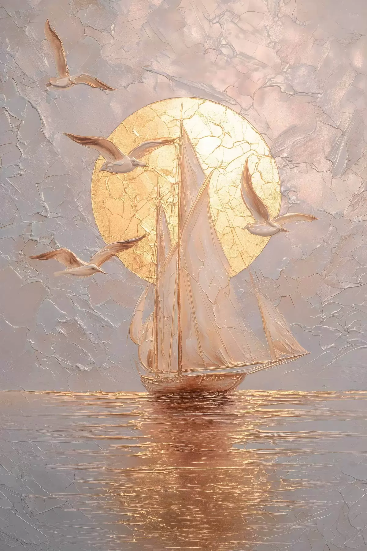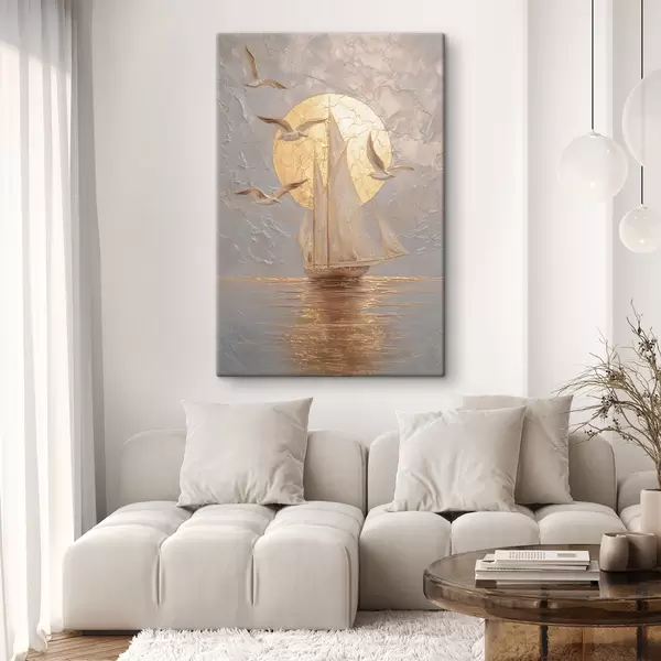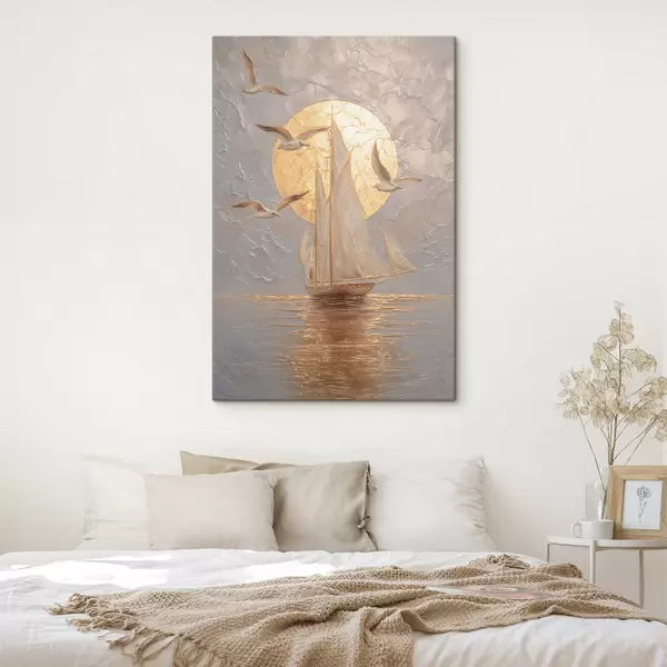 Obraz loď pri západe slnka v impasto štýle Nr. s48556
