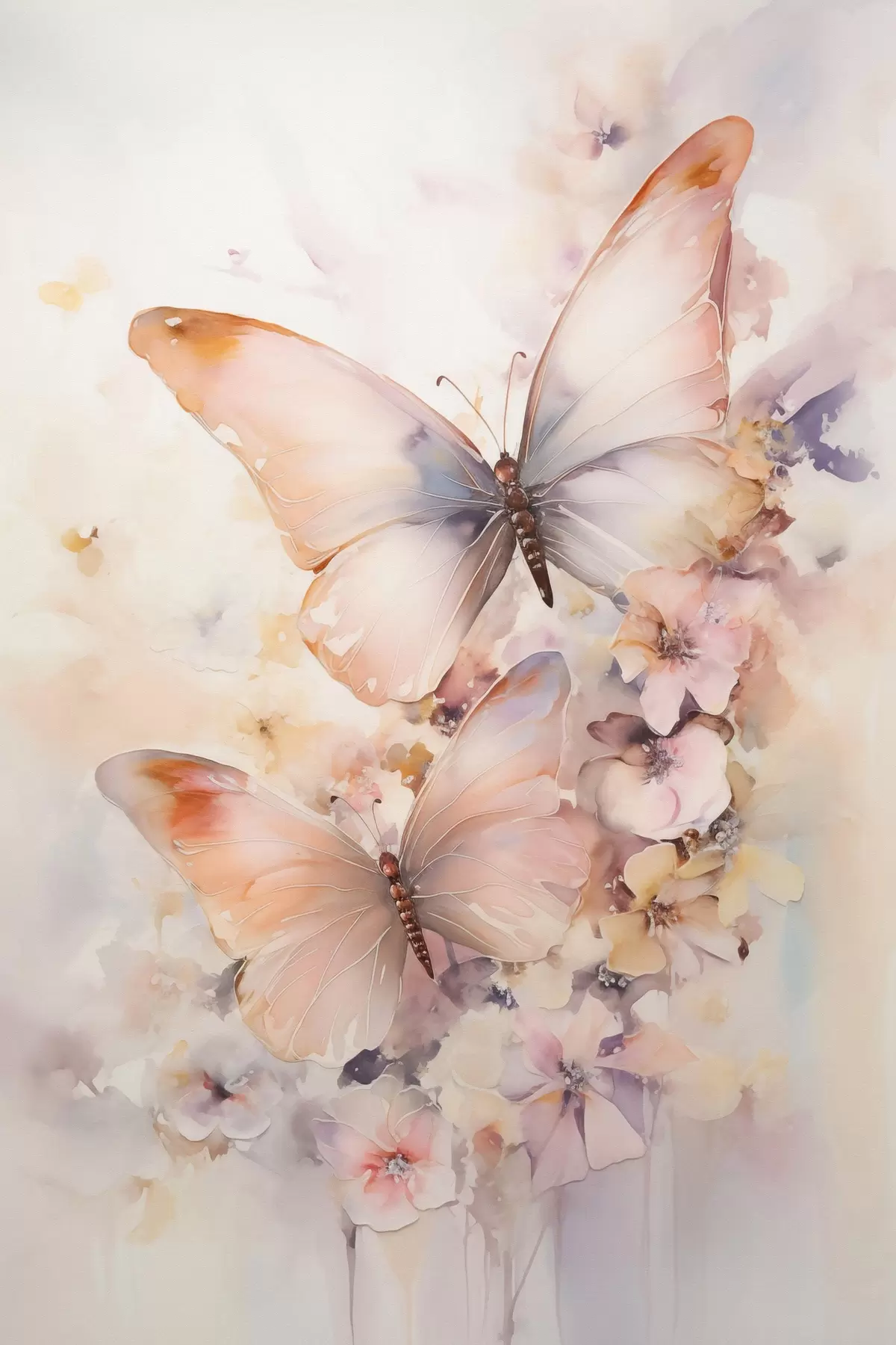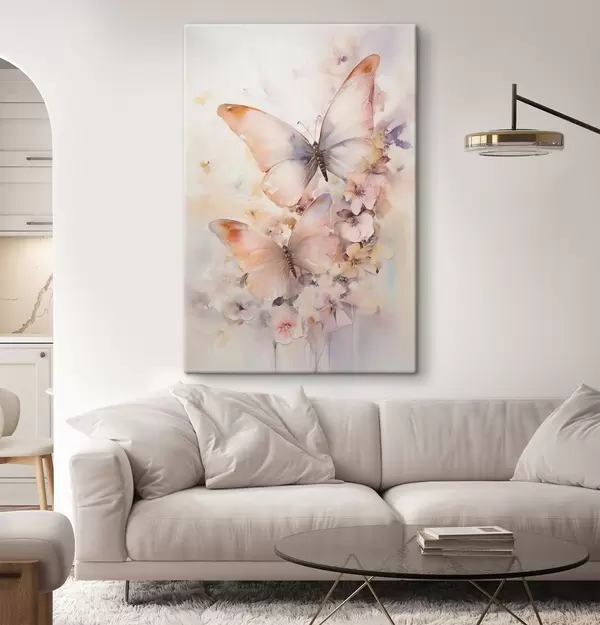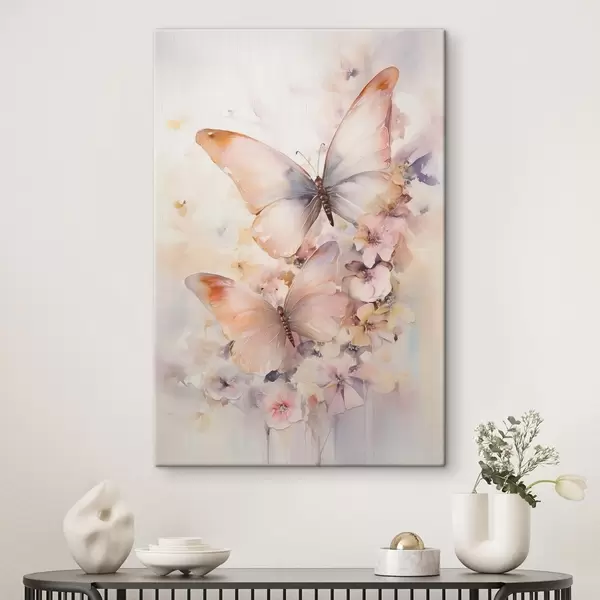 Obraz Krehké kvety s motýľmi, pastelové farby Nr. s48563