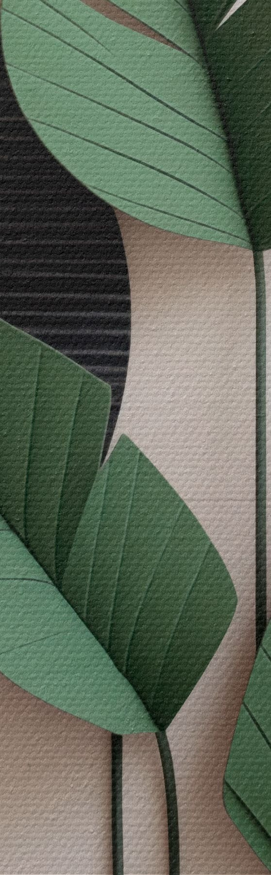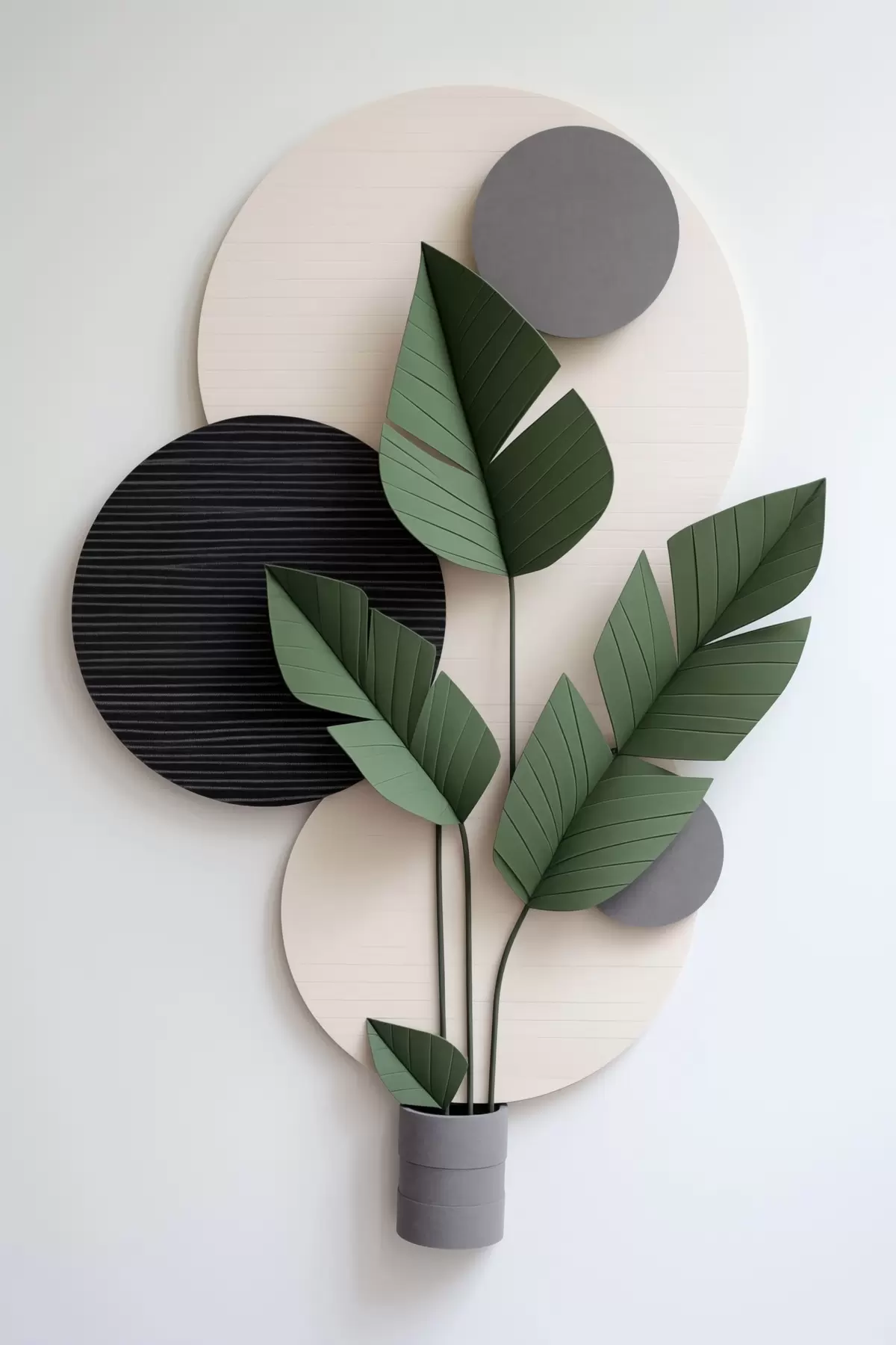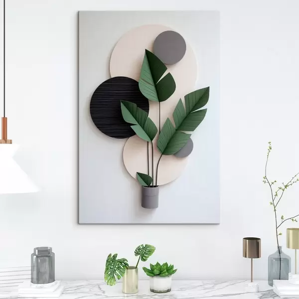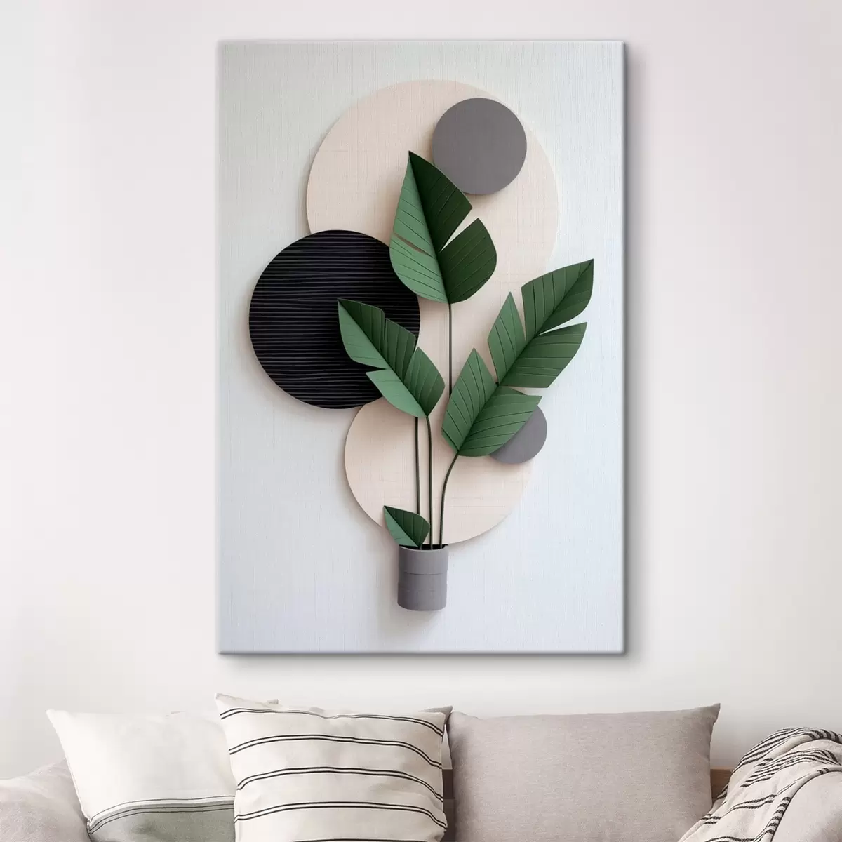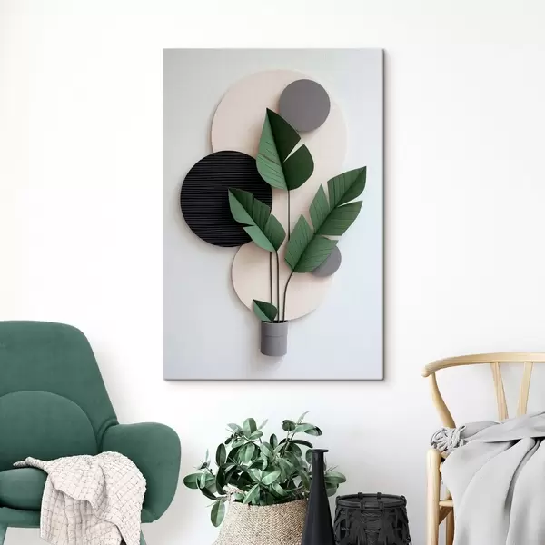 Obraz Minimalistická kompozícia s geometrickými kruhmi a zelenými listami Nr. s48607