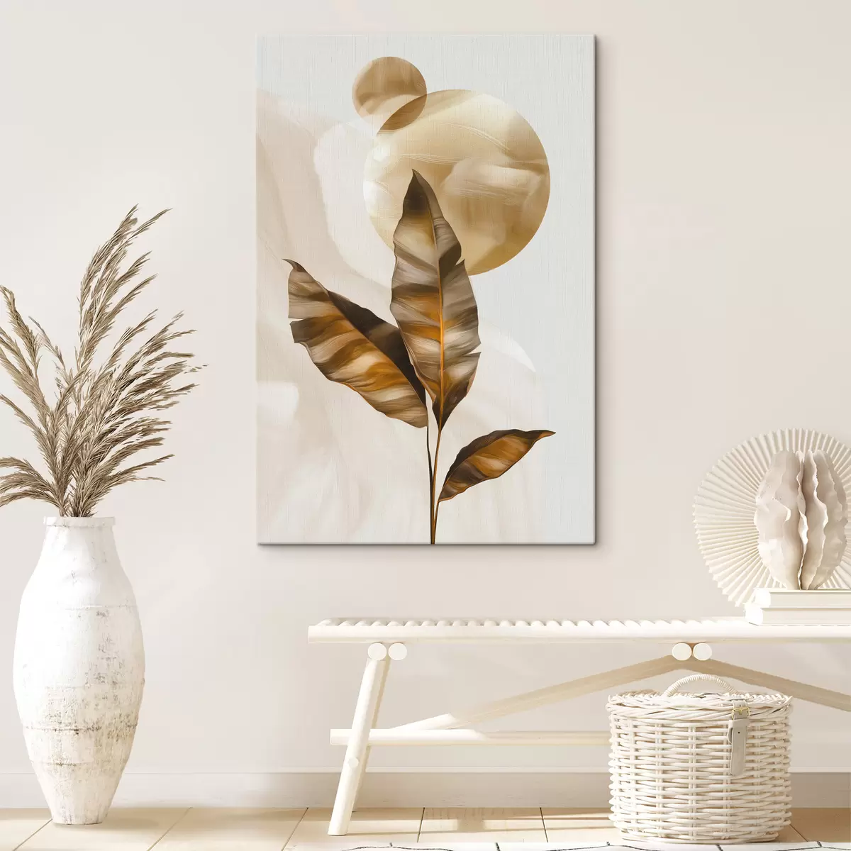 Obraz Abstraktná kompozícia z listov a kruhov Nr. s48614