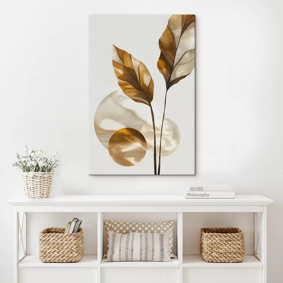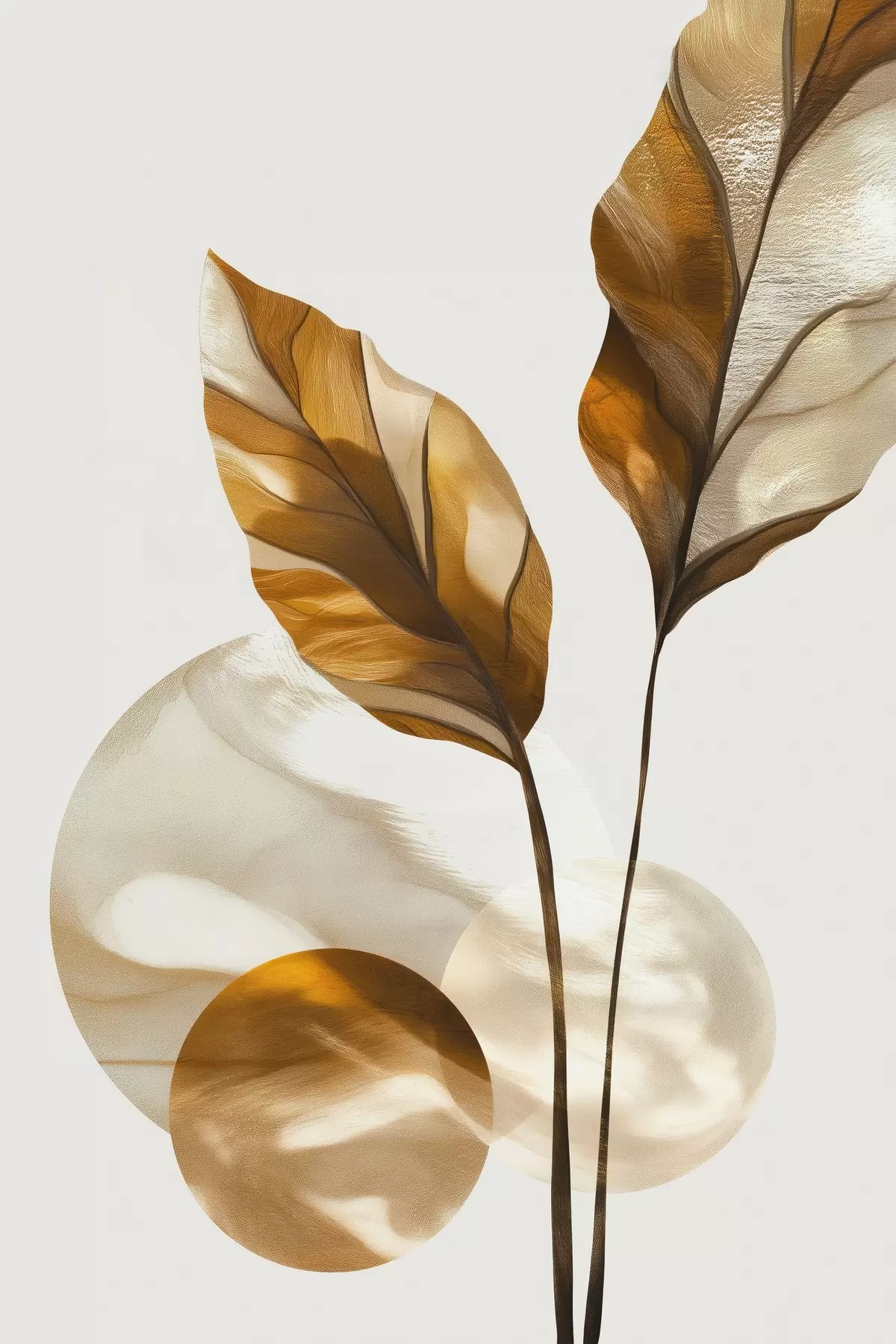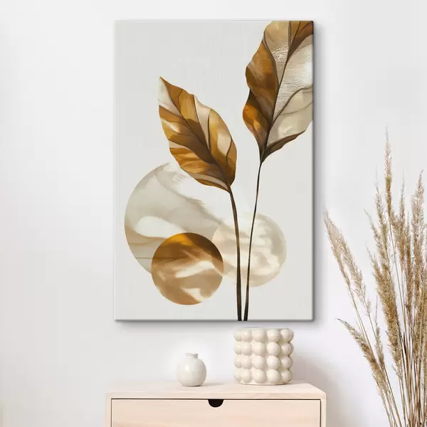 Obraz Abstraktná kompozícia z listov a kruhov Nr. s48615