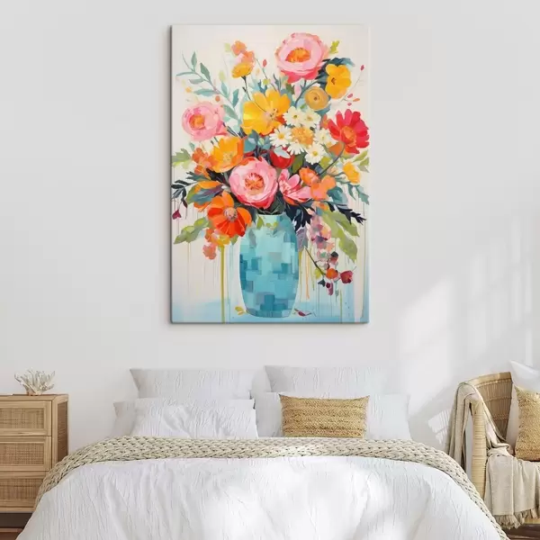Obraz je možné zavesiť ihneď po jeho prevzatí. Obraz bude napnutý na drevených nosidlách so šírkou 2 cm.