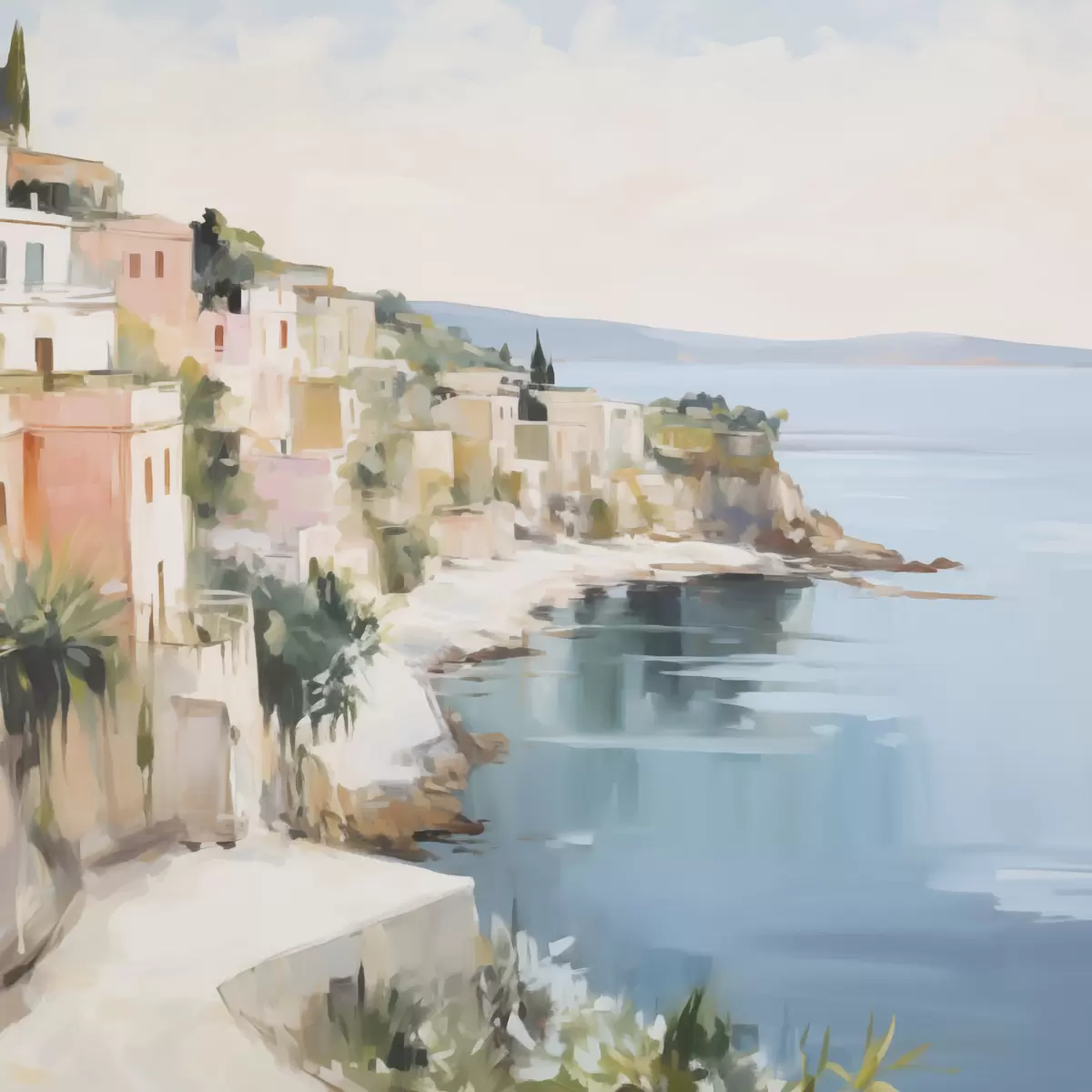 Obraz Krajina pobrežného mestečka – napodobenina maľby Nr. s48675