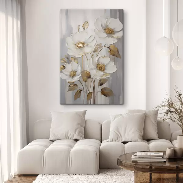 Obraz Biele kvety so žltými akcentmi na štruktúrovanom pozadí Nr. s48722