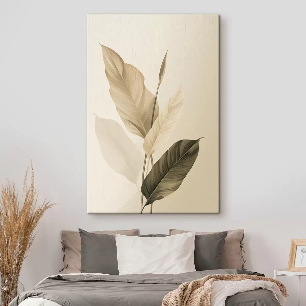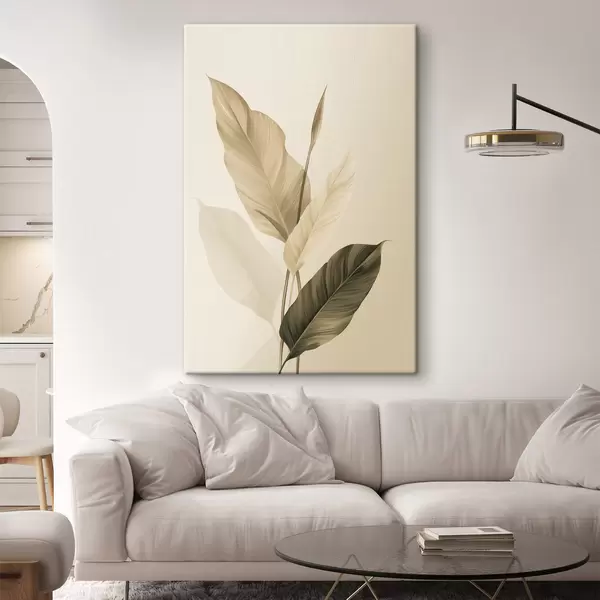 Obraz Veľké tropické listy v odtieňoch béžovej a hnedej, svetlé pozadie Nr. s48725