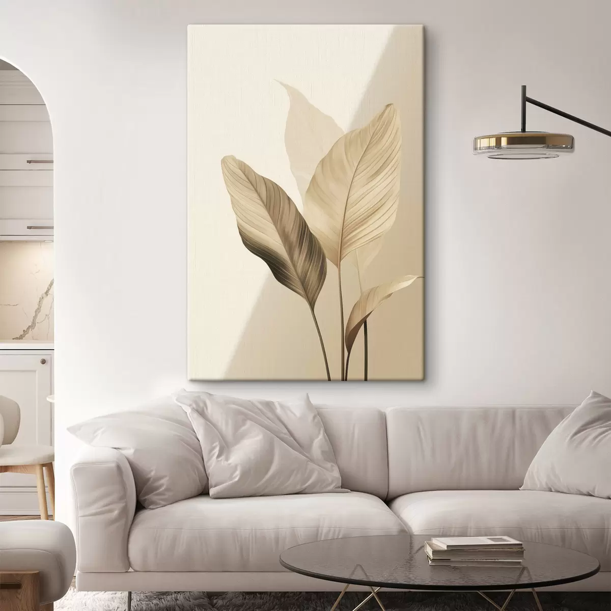 Obraz Veľké tropické listy v odtieňoch béžovej a hnedej, svetlé pozadie Nr. s48726