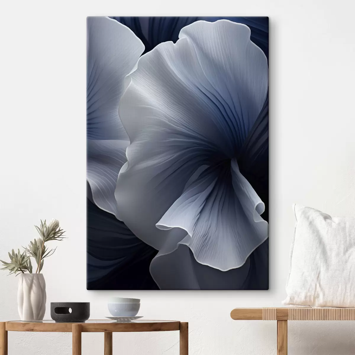 Obraz Abstraktné modro-biele okvetné lístky na tmavom pozadí Nr. s48731