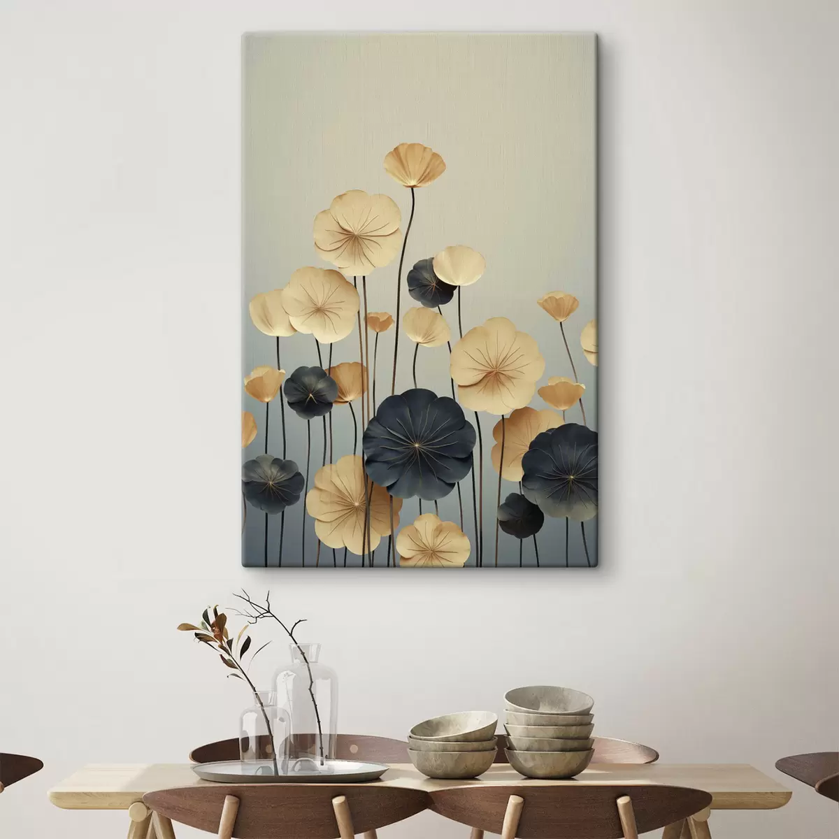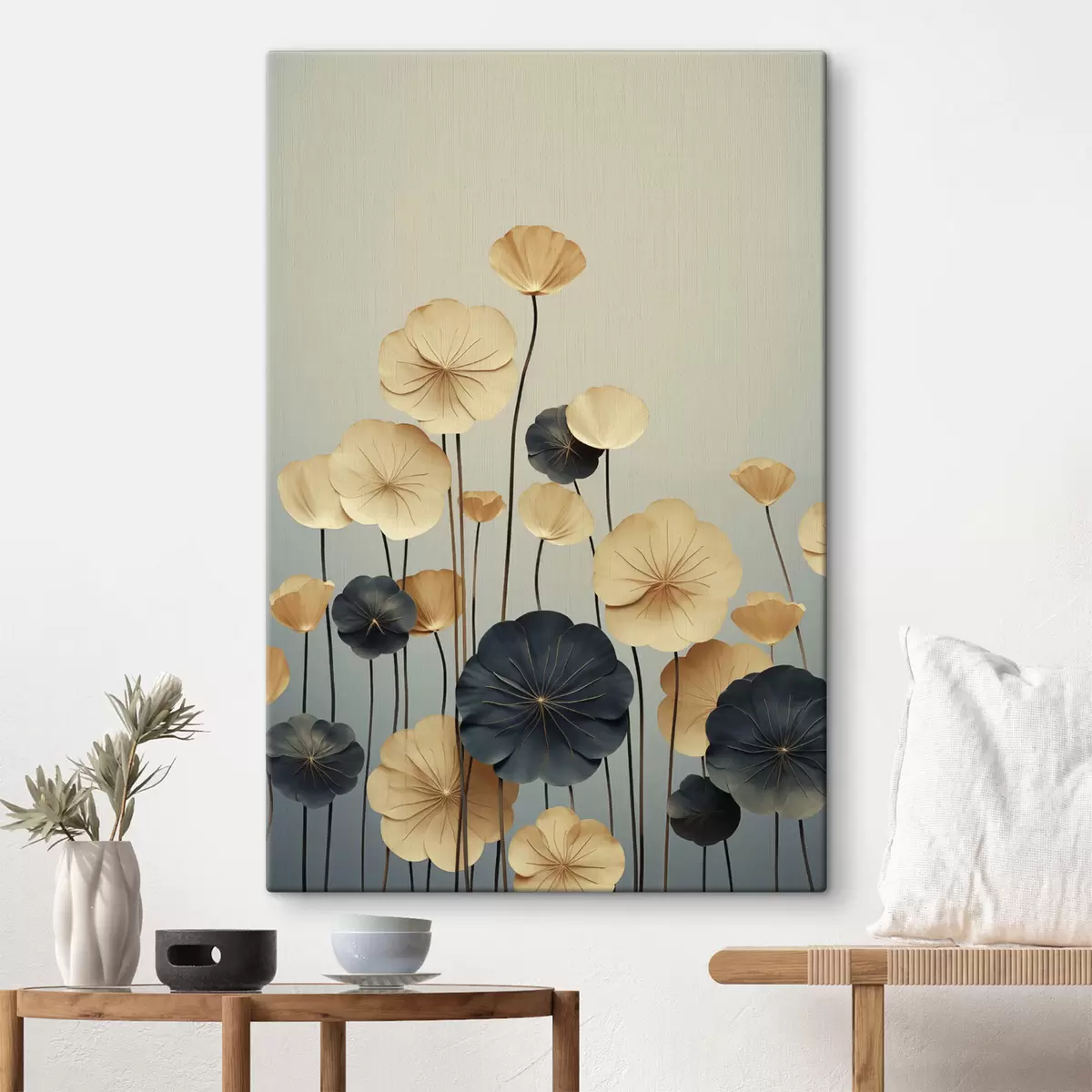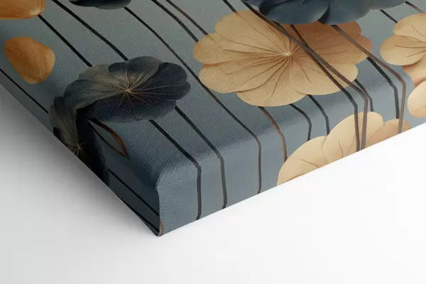 Obraz Listy lekna na tlmenom pozadí v béžovej a tmavomodrej farbe Nr. s48734