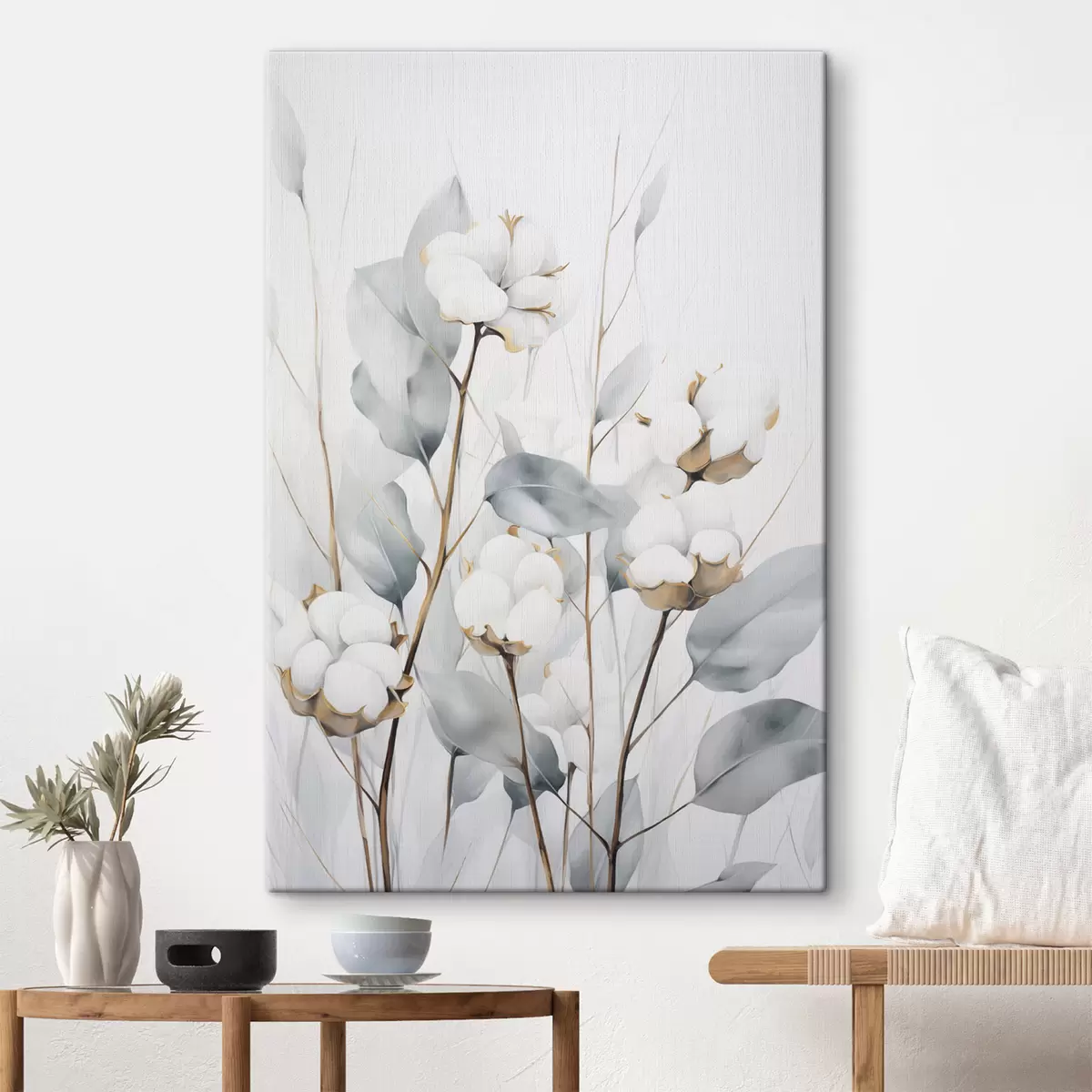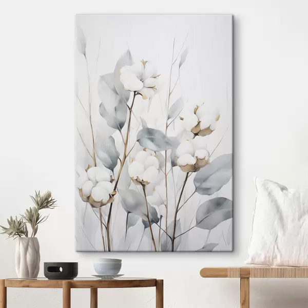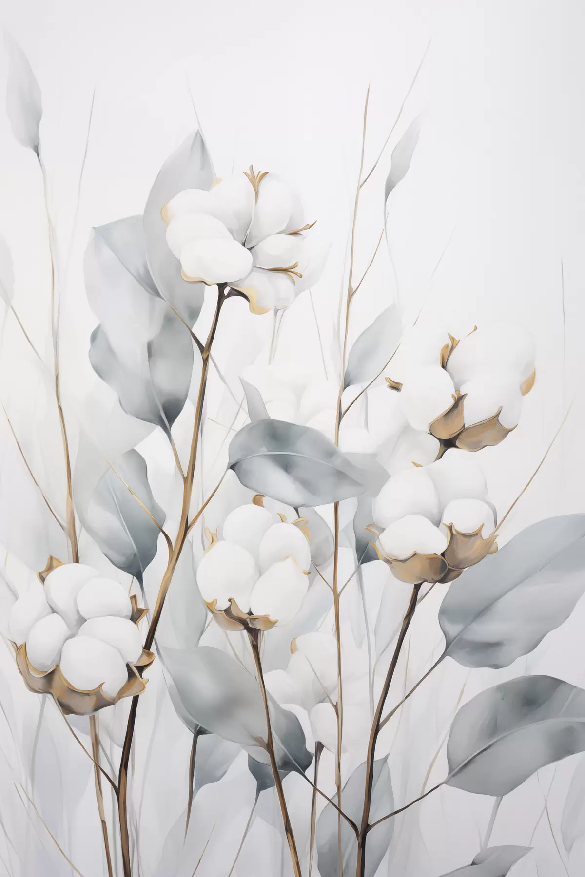 Obraz Biela bavlníková rastlina so svetlo modrozelenými listami na svetlom pozadí Nr. s48743