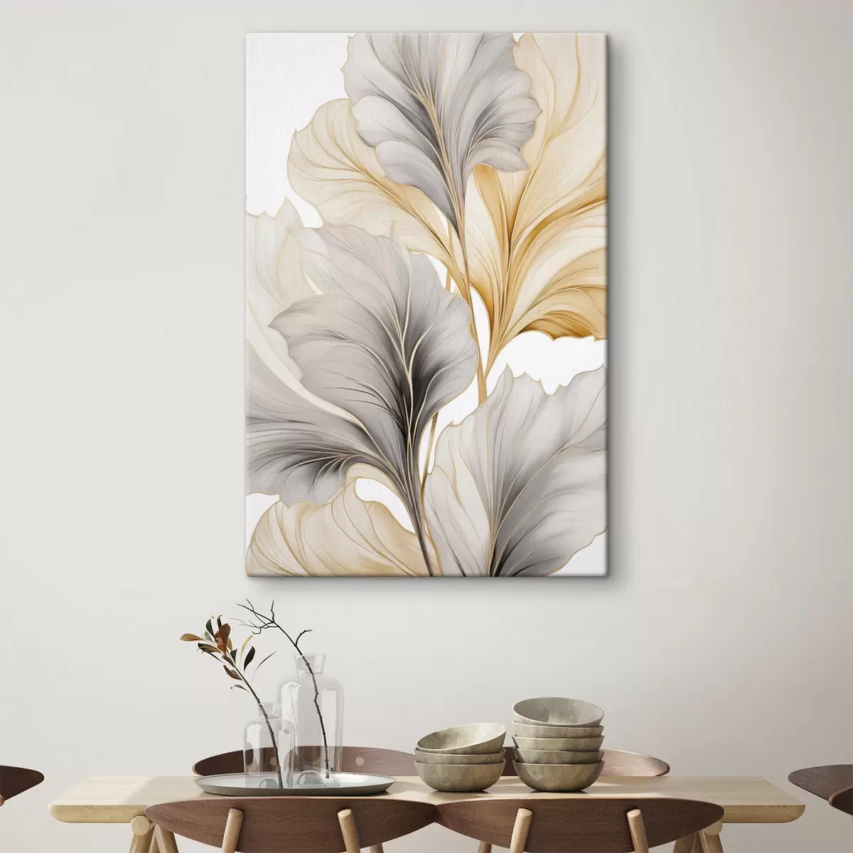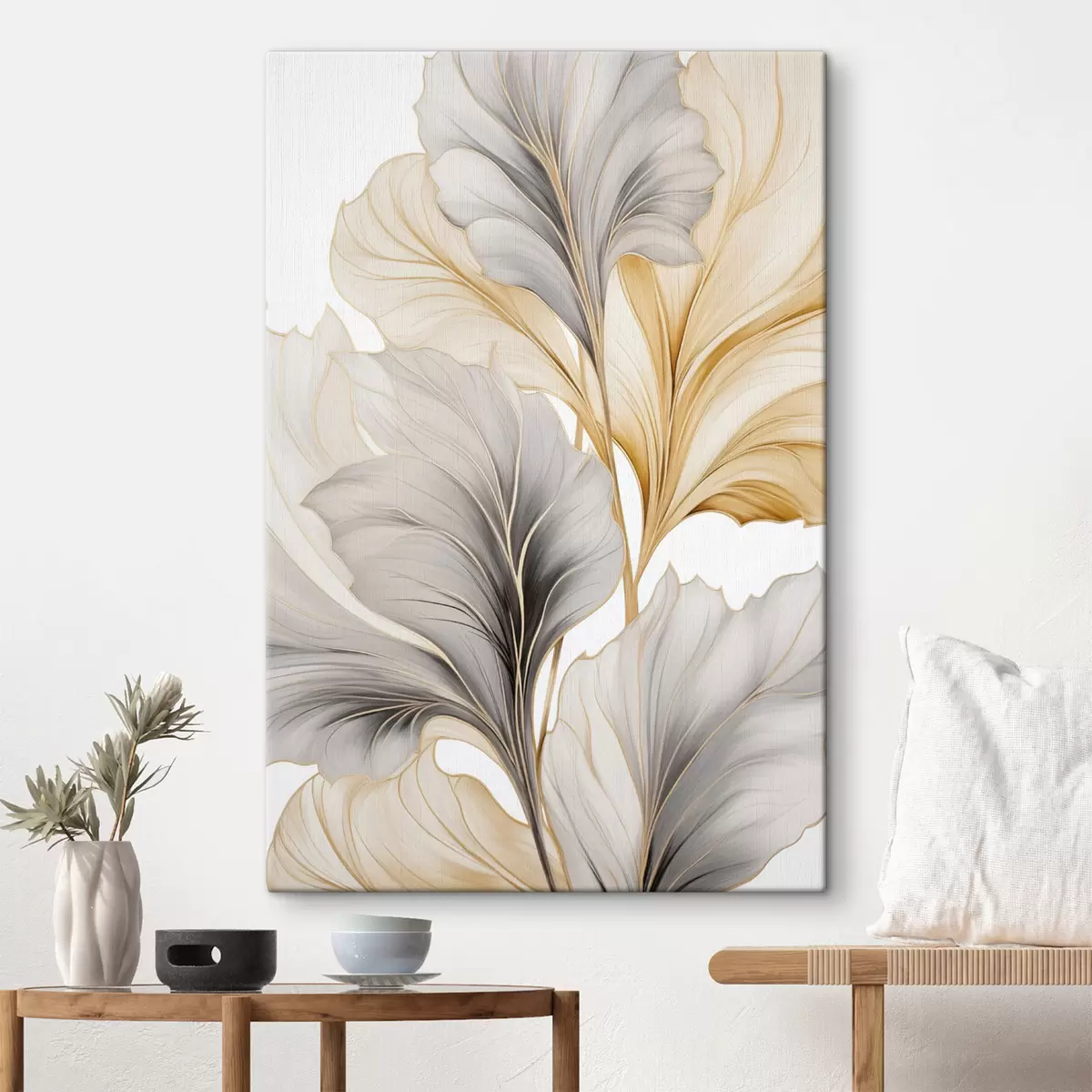 Obraz Veľké, priehľadné listy v odtieňoch šedej a žltej Nr. s48745