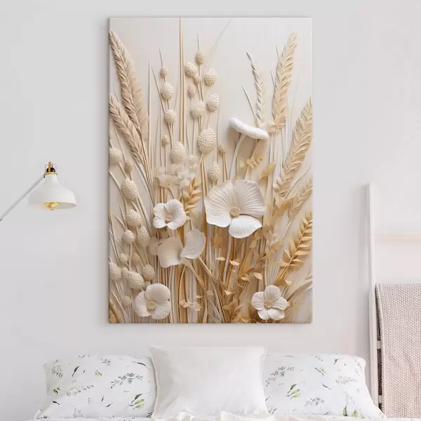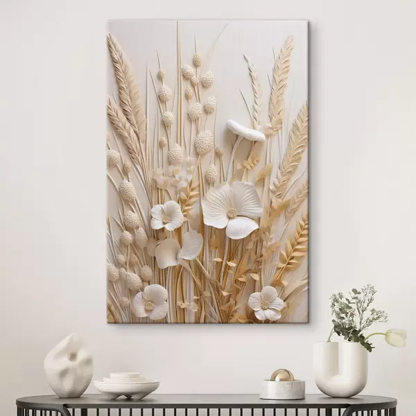 Obraz Kytica krémových makov so sušenými steblami pšenice Nr. s48748