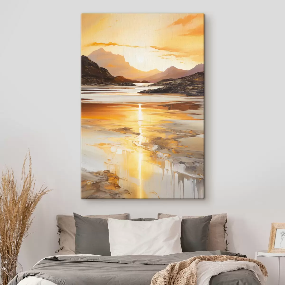 Obraz je možné zavesiť ihneď po jeho prevzatí. Obraz bude napnutý na drevených nosidlách so šírkou 2 cm.