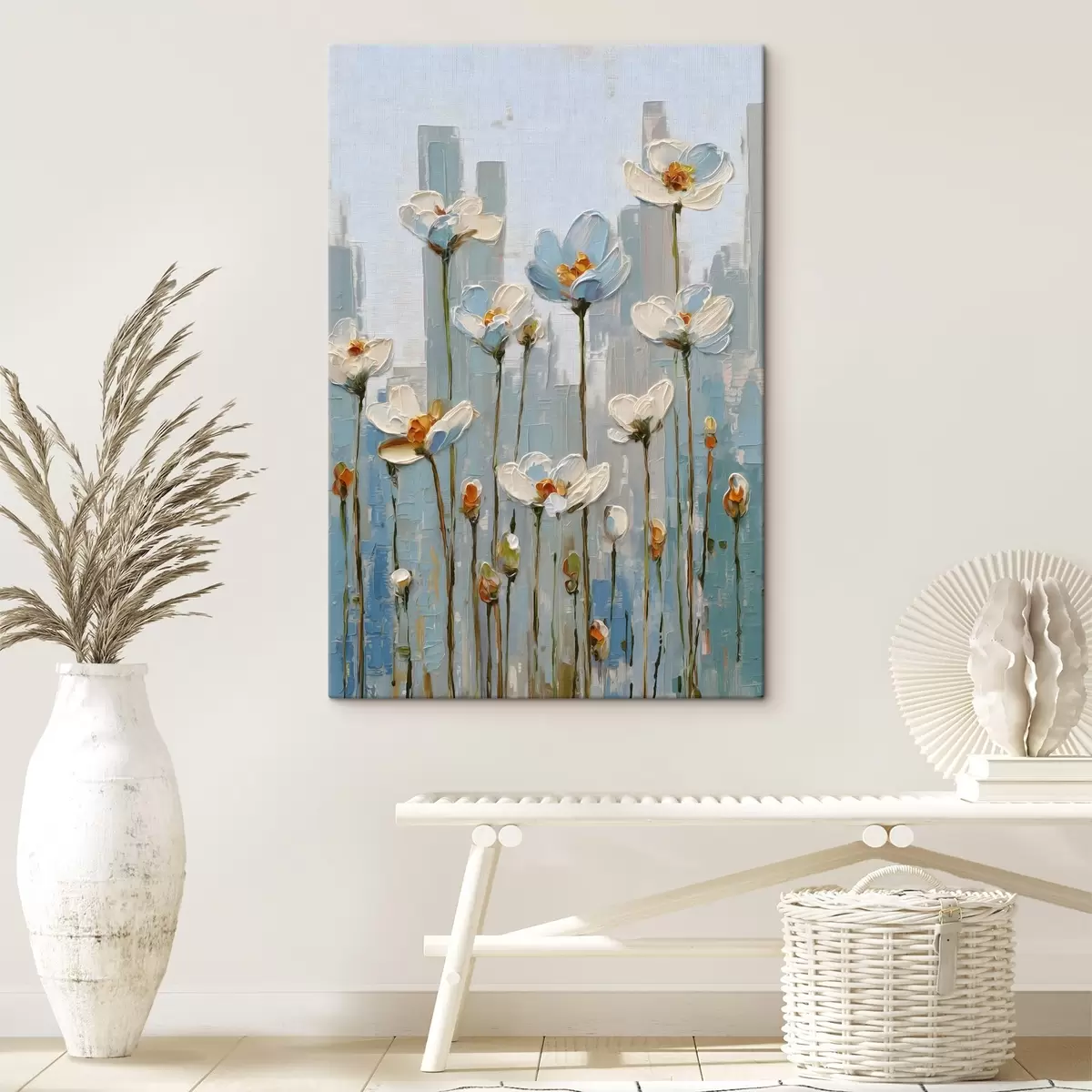 Obraz kvety na pozadí mesta, v štýle olejomaľby Nr. s48786