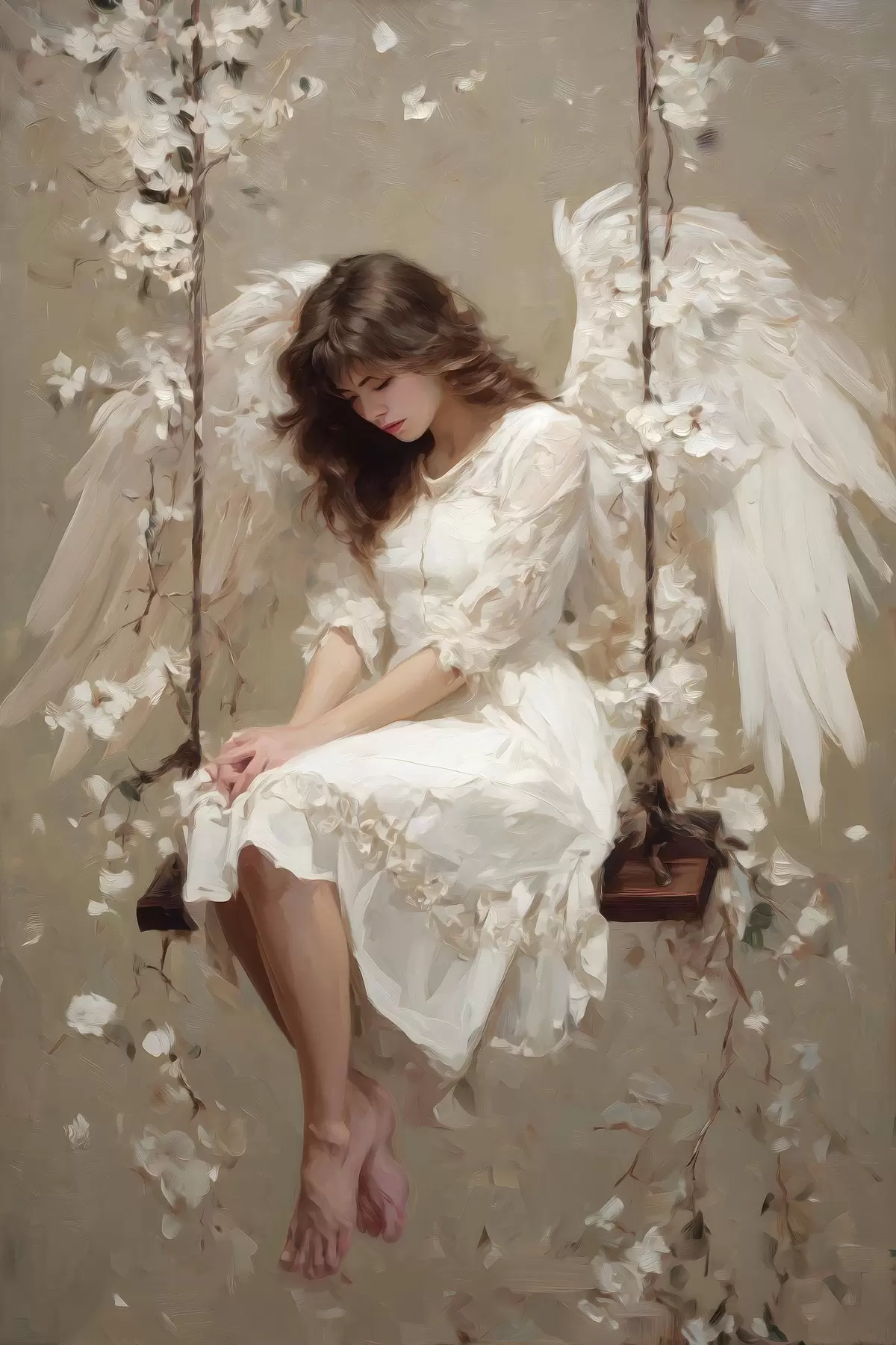 Obraz dievčatko ako anjel na hojdačke, namaľované v olejovom štýle Nr. s48789