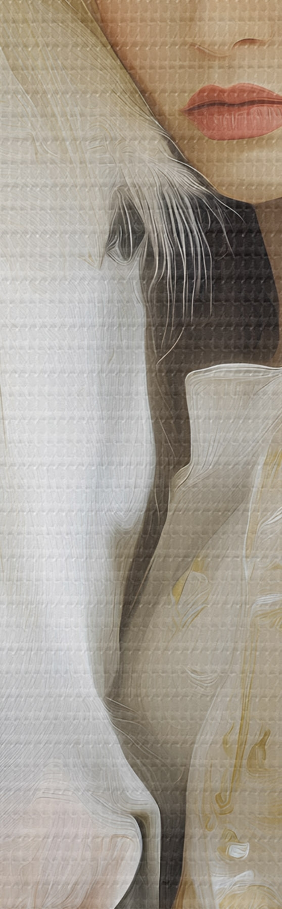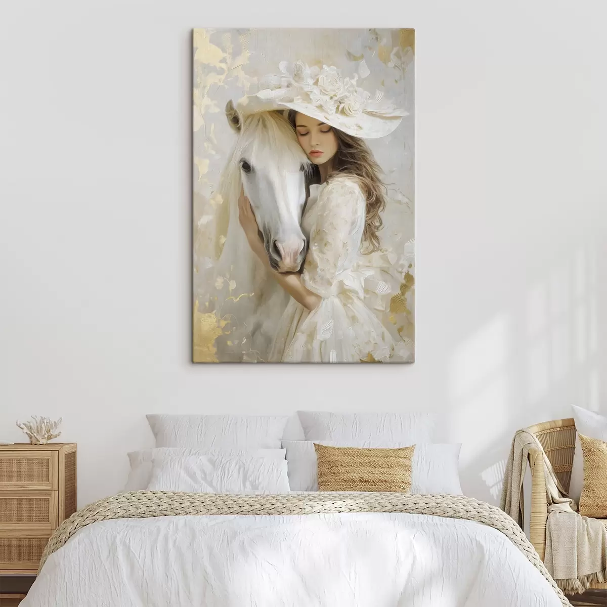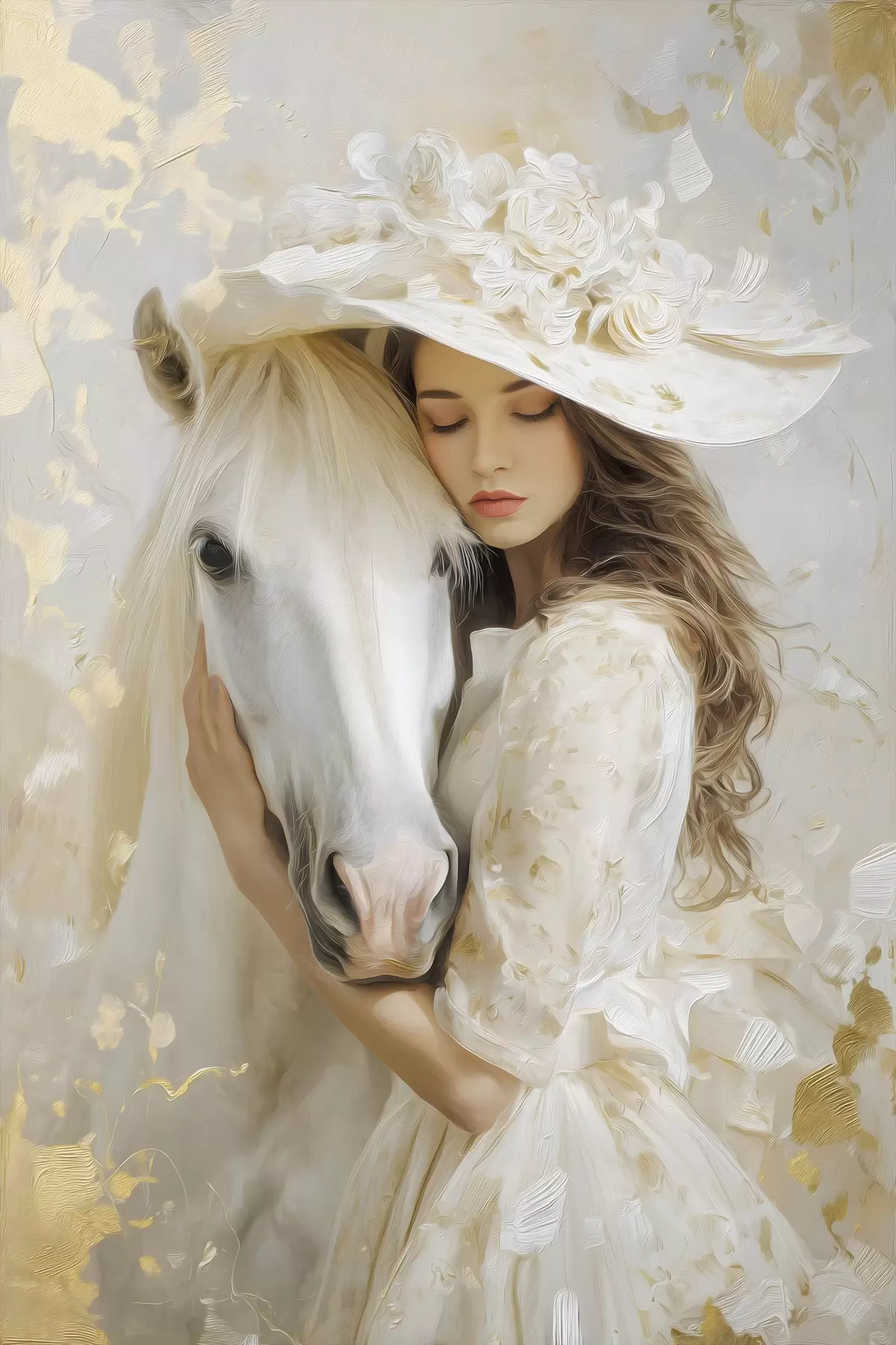 Obraz dievča s bielym koňom, namaľované v olejovom štýle Nr. s48790