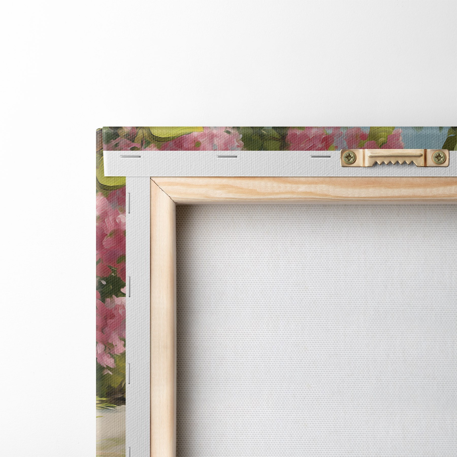 Obraz môžete zavesiť na skrutky. Na tento účel k našim obrazom prikladáme úchytky, ktoré vám umožnia obraz pohodlne zavesiť.
