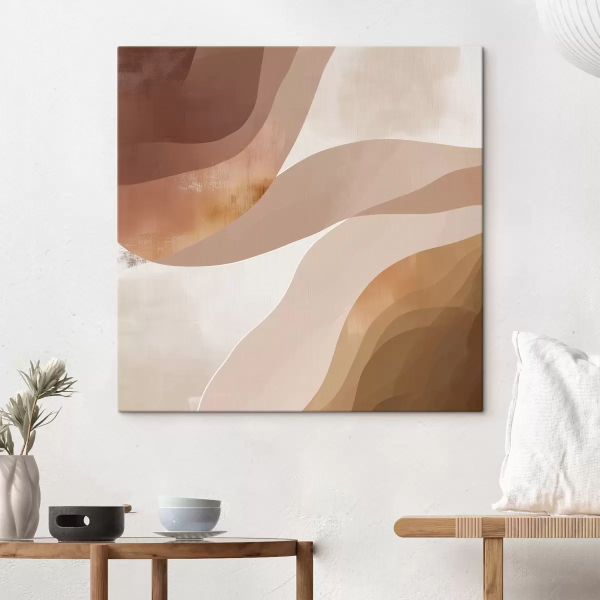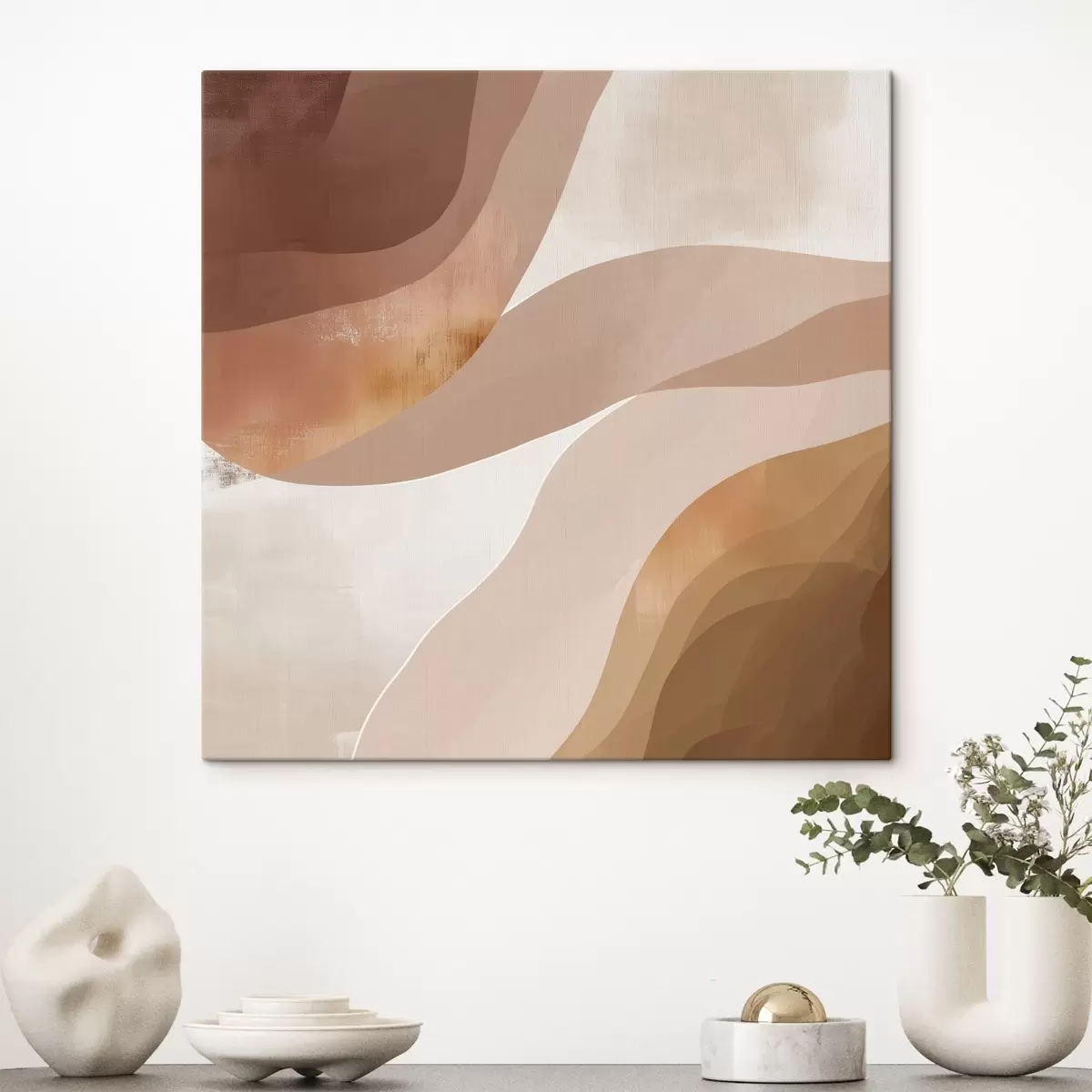 Obraz Abstraktné vlnovité tvary v kávovo-béžovej farebnej škále Nr. s48836
