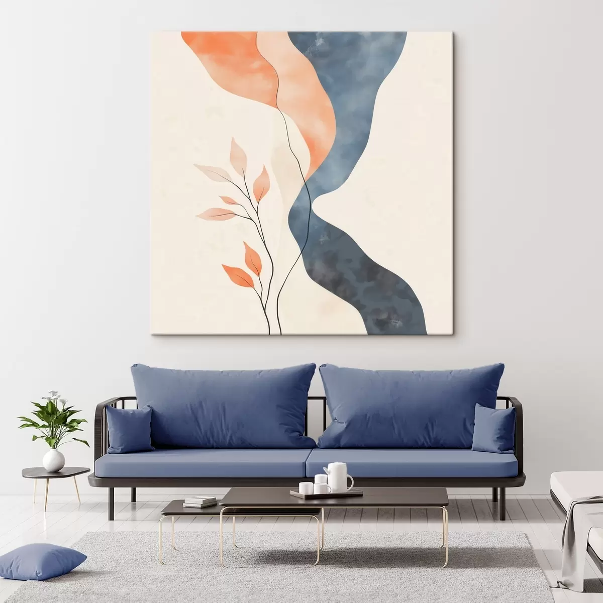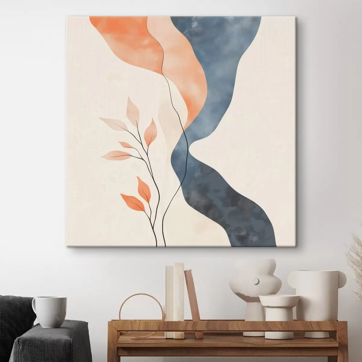 Obraz Kvetinová kompozícia s plynulými líniami v modro-oranžovej farebnej škále Nr. s48837