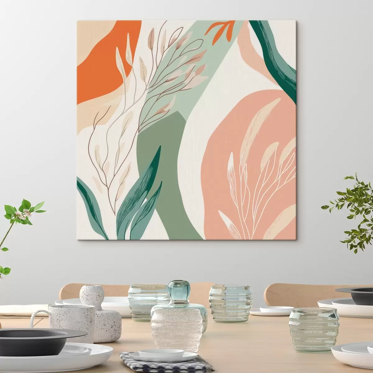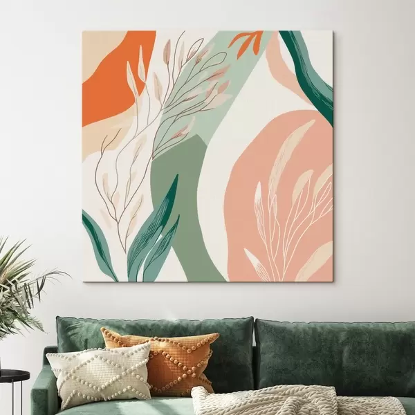 Obraz Botanické umenie s jemnými tvarmi v koralovo-zelenej farebnej palete Nr. s48840