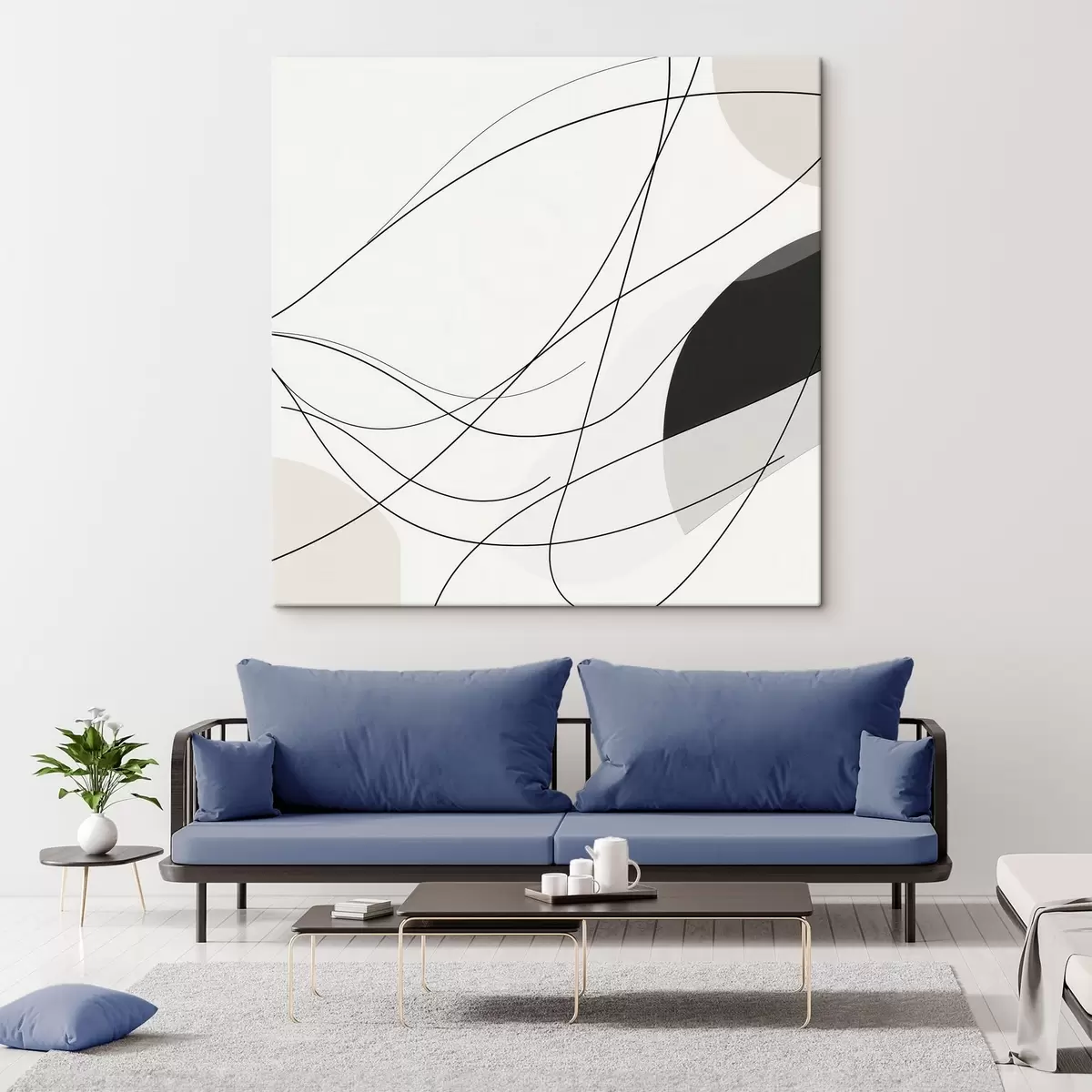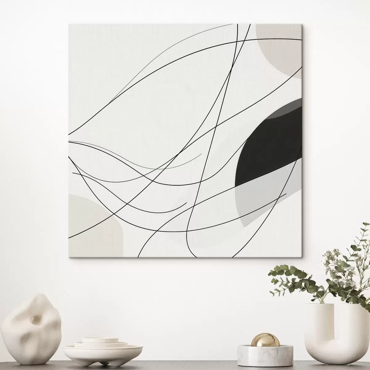 Obraz Abstraktná kompozícia s tenkými zakrivenými čiarami v minimalistickom štýle Nr. s48854