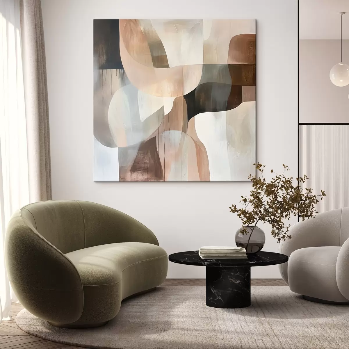 Obraz Abstraktná kompozícia v teplej béžovo-koralovej farebnej škále Nr. s48859