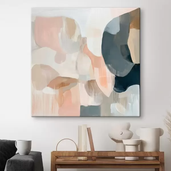 Obraz Abstraktná kompozícia v pastelových a tmavomodrých odtieňoch v modernom maliarskom štýle Nr. s48860